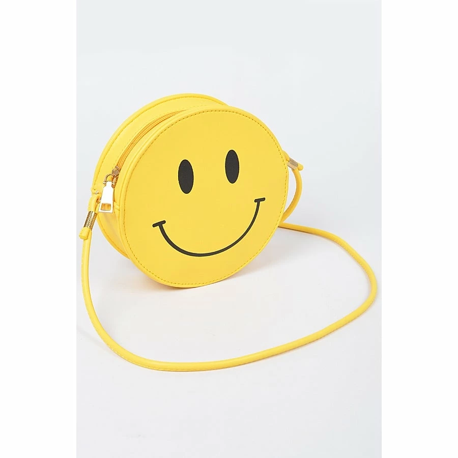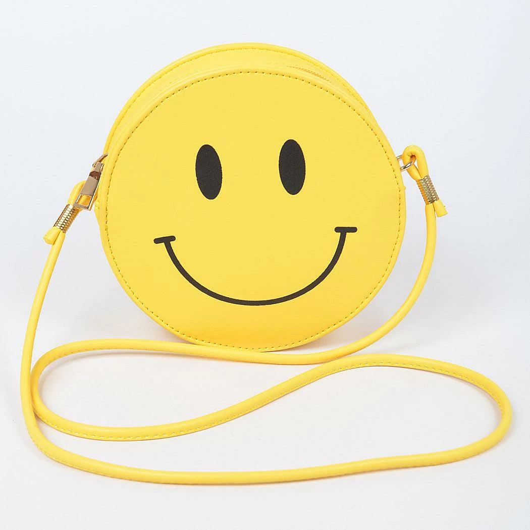 Spread a little happiness wherever you go with the Happy Face Crossbody bag! A sunny yellow smiley face, similar to a vintage smiley bag popular in the 1960’s, is ready to help you face your day. Large enough for your phone and other small essentials, this happy handbag will pair nicely with any ensemble!