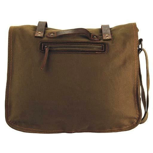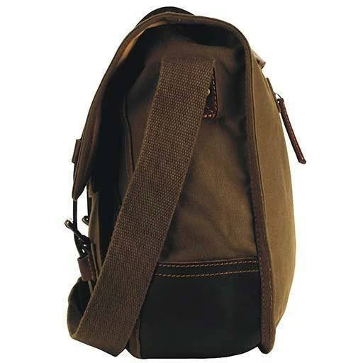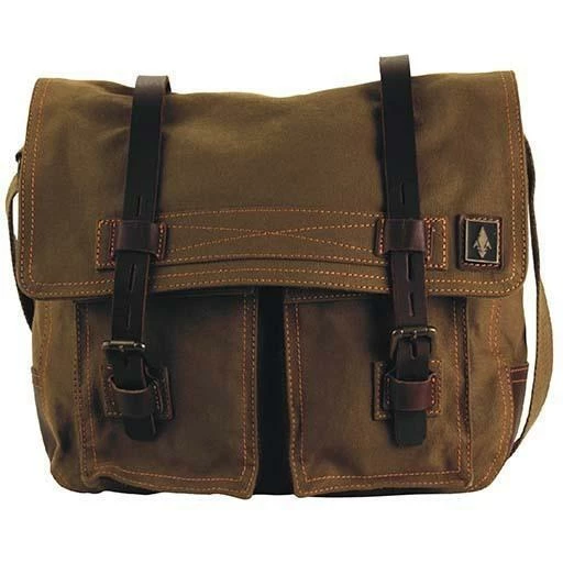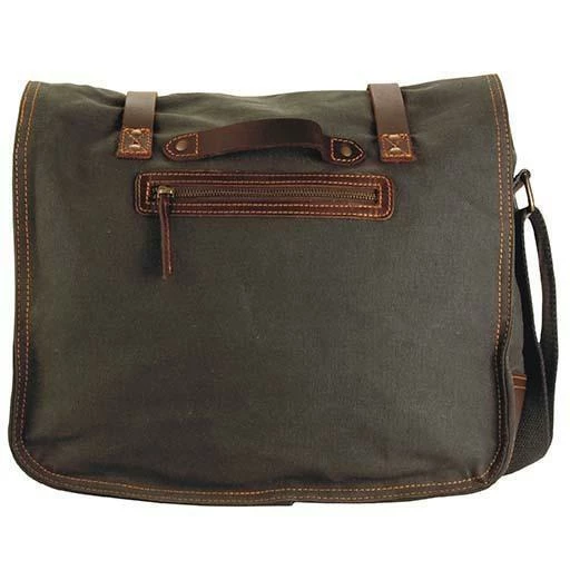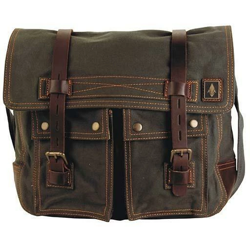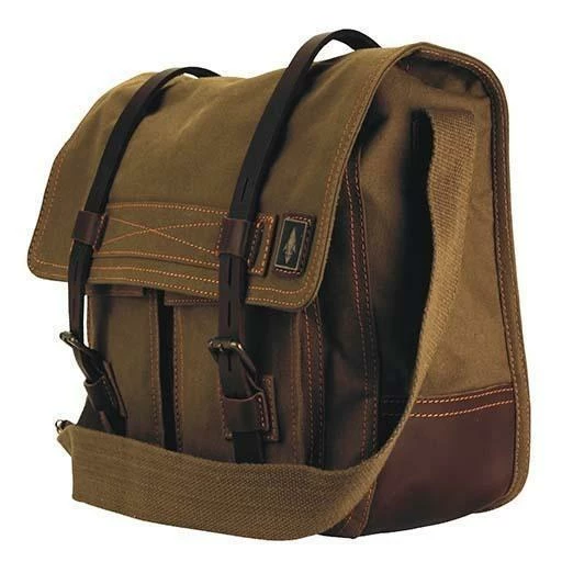 - Outstanding features: Main compartment secured by two leather buckled straps and one interior buckled canvas strap; room enough for laptop, tablet and more; versatile; double stitching at stress points and riveted reinforcement makes this messenger extremely durable.