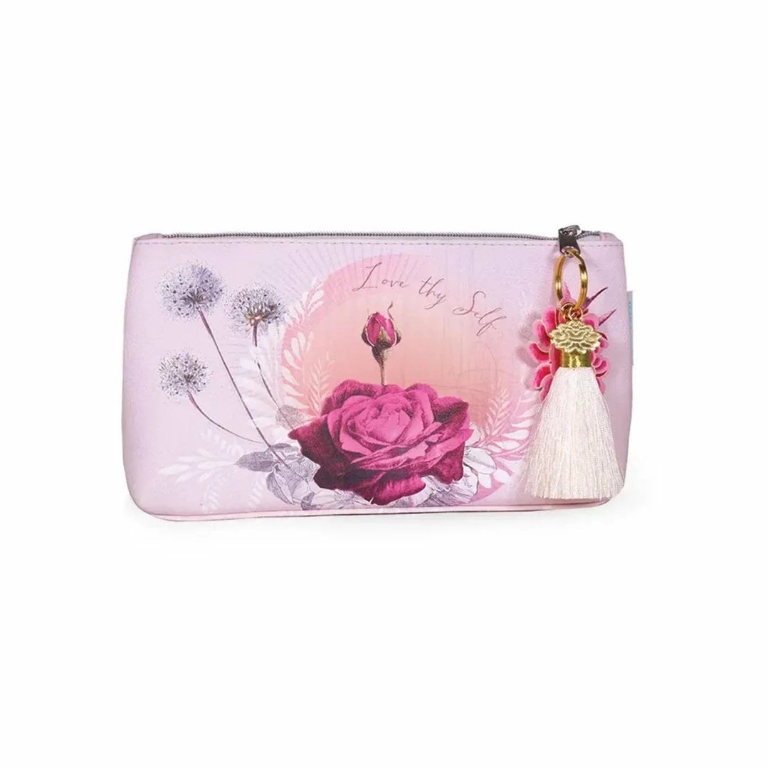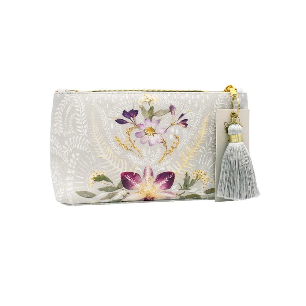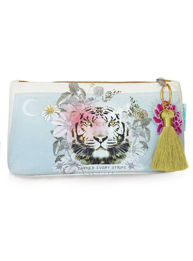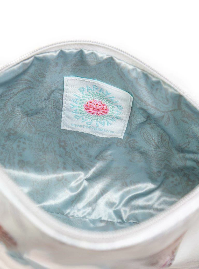 Pretty enough to use as an everyday clutch and durable enough for organizing makeup, jewelry, art supplies and more. Small Tassel Pouches come with a coordinating luxury tassel and lotus charm which can be removed and used as a key chain. Pouches are made using a durable oilcloth-like material and have shimmering, illustrated satin linings. Pair as a set with the Large Tassel Pouch for the perfect travel accessories.