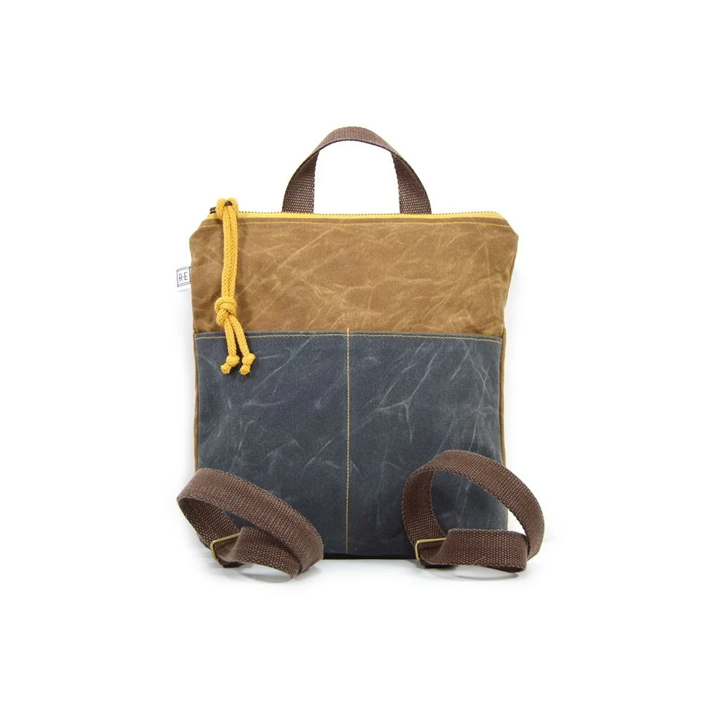The Mini Backpack is the perfect travel companion, whether you’re heading to the airport or just to grab some groceries. Fits all the essentials with a little room to spare– and check out those exterior pockets!. Like all our products, this waxed canvas backpack is made with 100% vegan materials. This Mini Backpack is made with brown waxed canvas and your choice of complementing waxed canvas. Fully lined with canvas. Closes with a zipper and has one interior pocket. Measures 11 in tall x 10 in wide and has two adjustable straps.