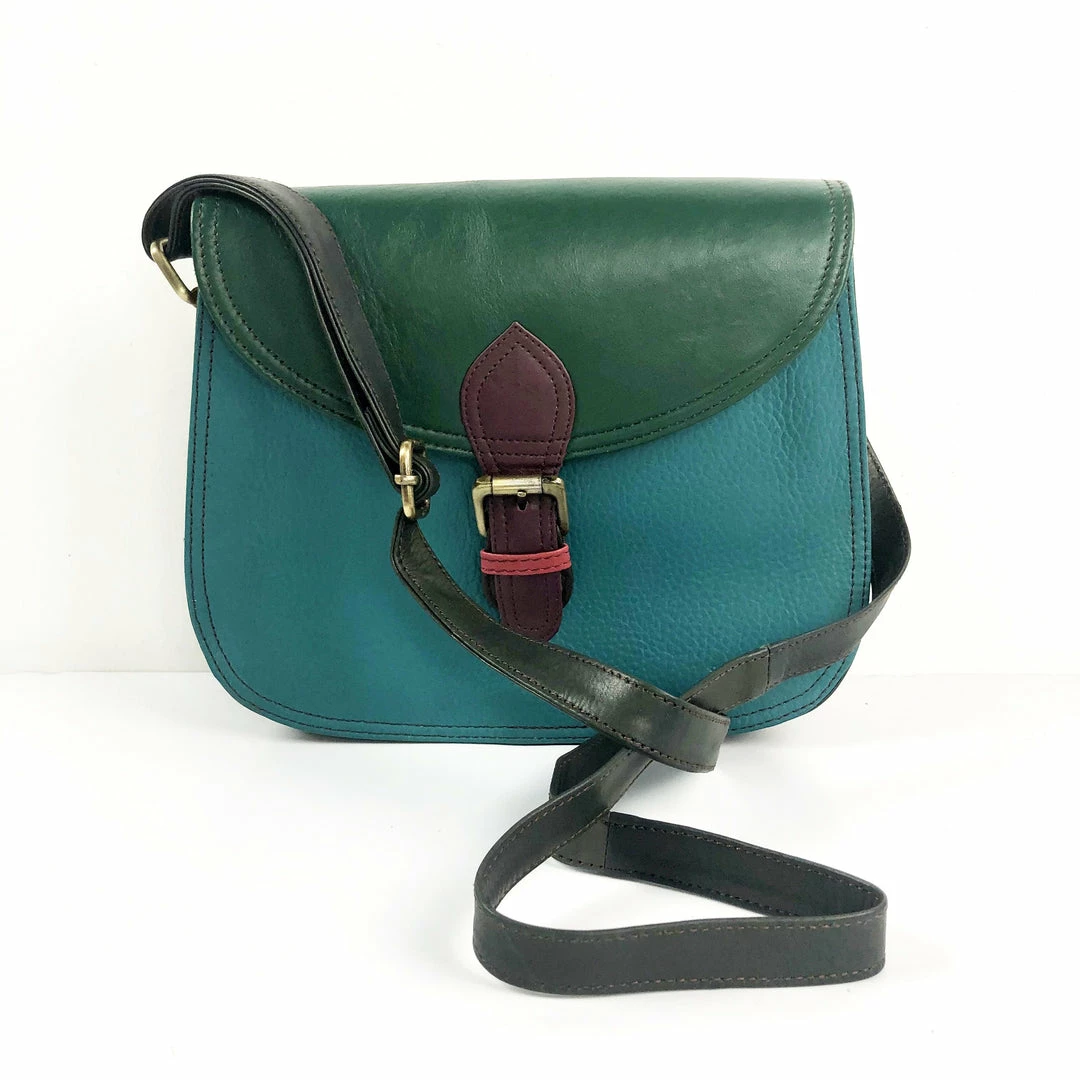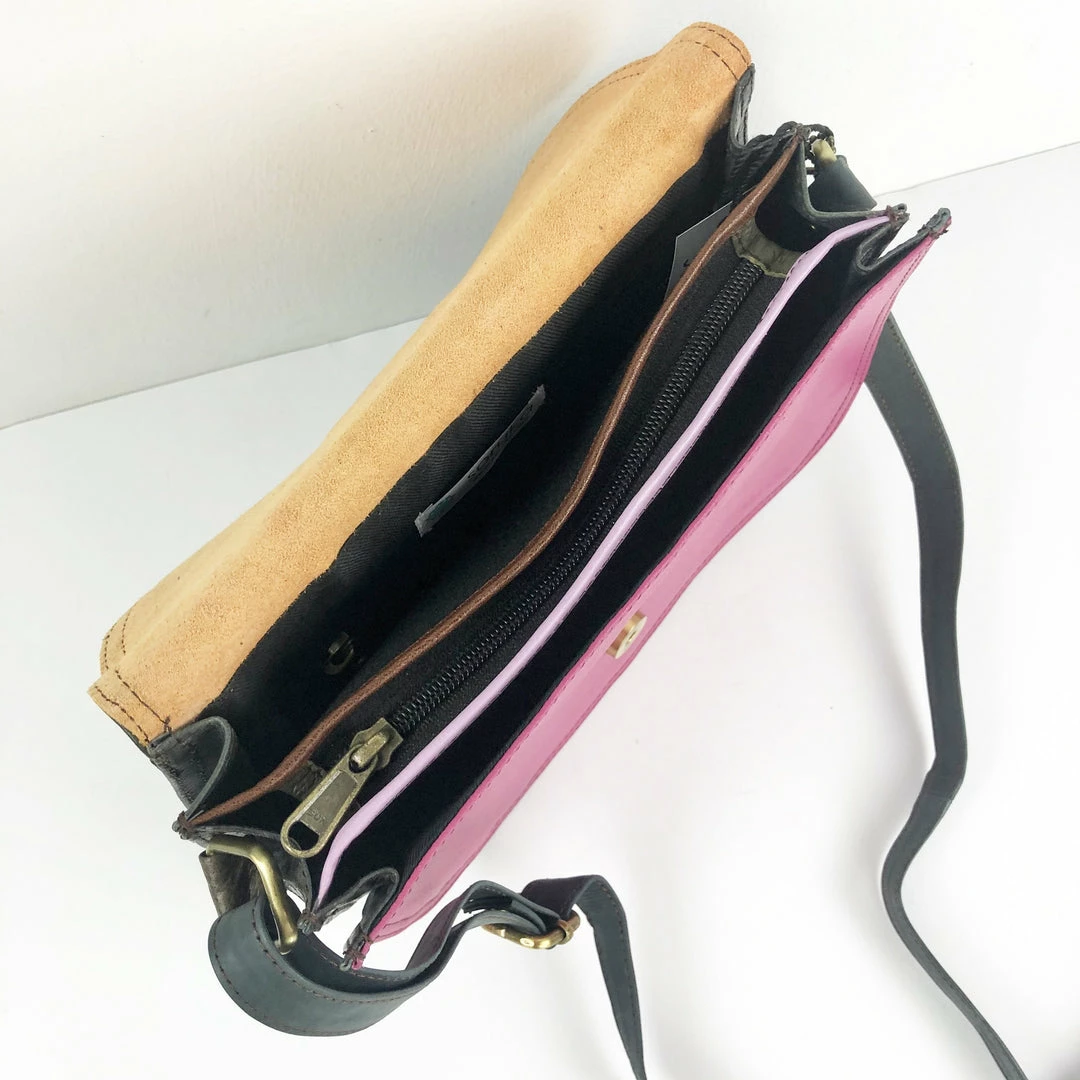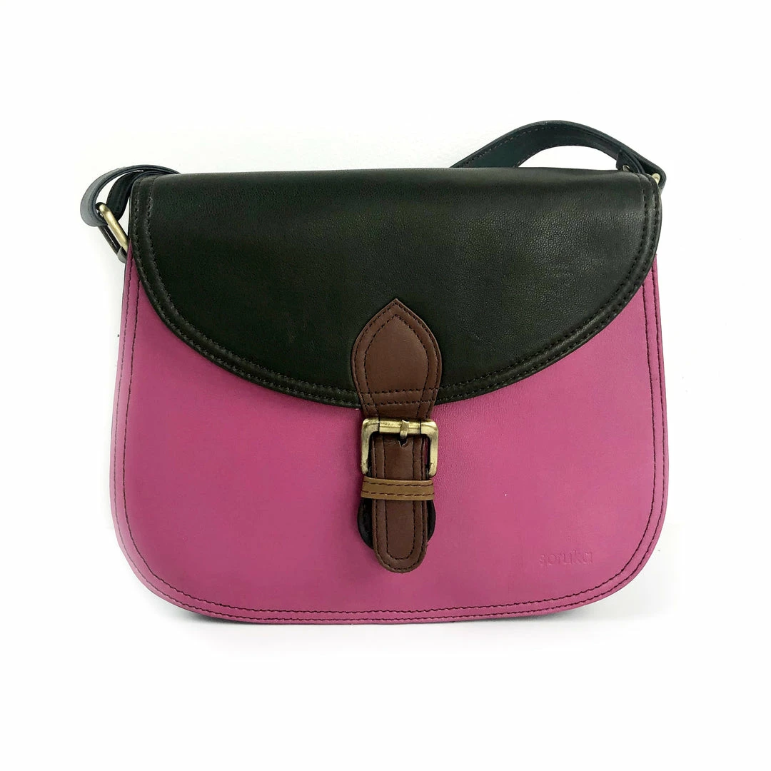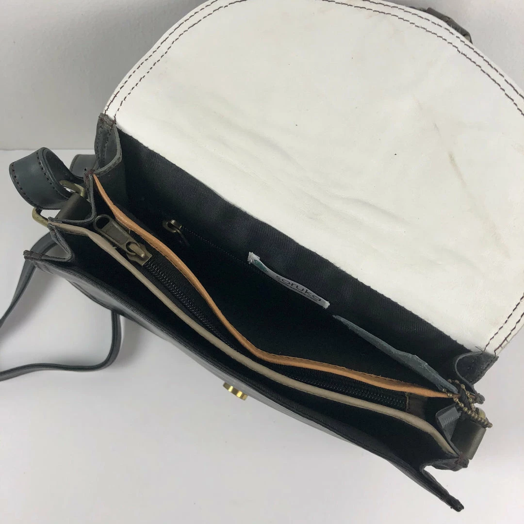 Soruka bags are designed in Barcelona and handmade though fair trade practices in India. The bags utilize recycled leather scraps that may include some imperfections and are zero waste. No two bags are the same.