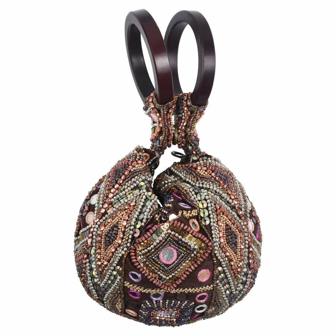 Each bag is lined, has an inside pocket, zippered closure, and a magnetic snap to hold the handles together! Hand beaded by artisans in India, this bag slips over your wrist for a hands-free statement. Our Club Bag Collection is changing the lives of over 1000 people in Uttar Pradesh, India’s poorest state. Your purchase makes a difference!