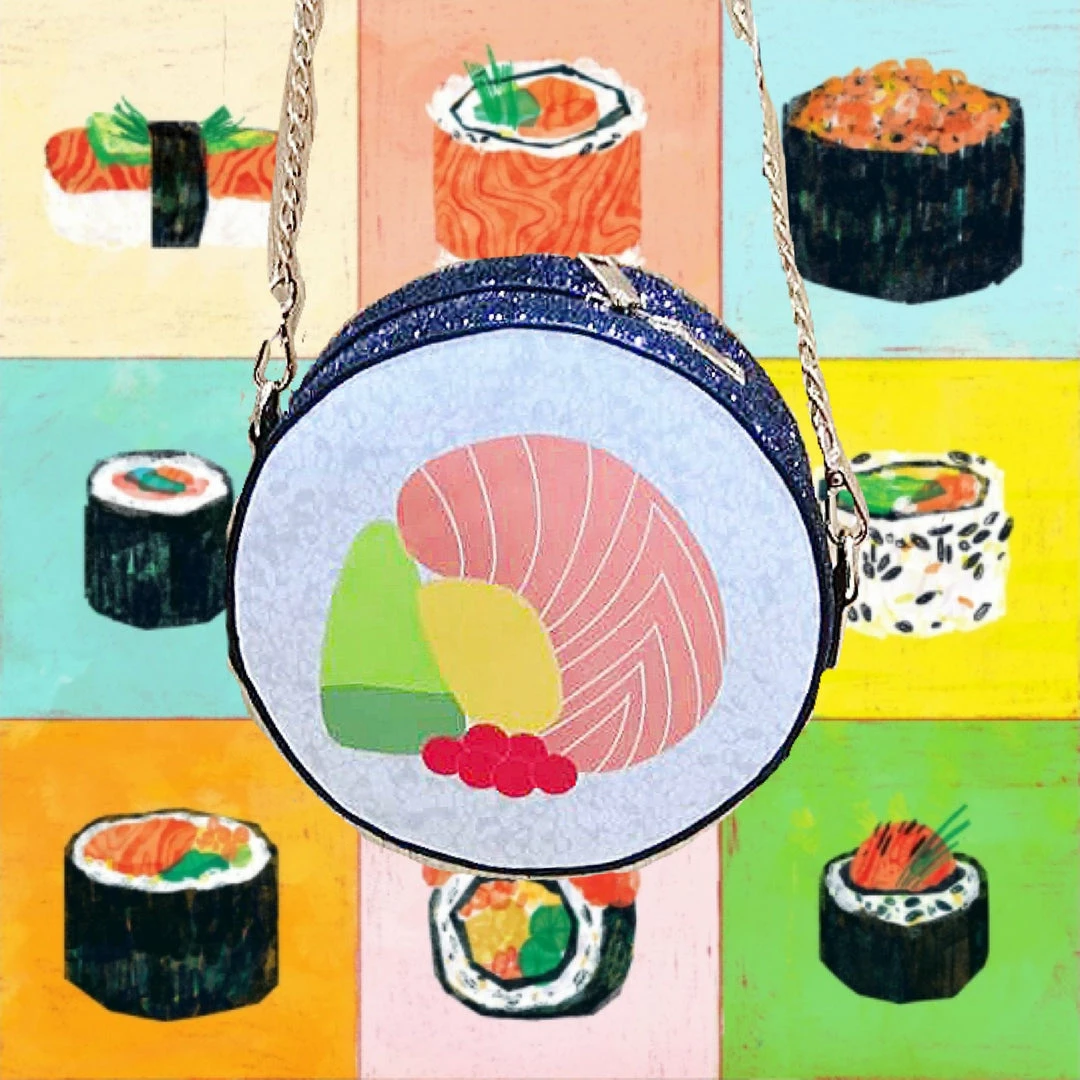 Time to get kawaii hungry! This fun purse is for all sushi lovers and enthusiasts; and is a staple novelty item! Makes a yummy addition to your outfit and is perfect for daily use! Equipped with an adjustable strap with gold chain accent, this PU leather bag is on a roll!