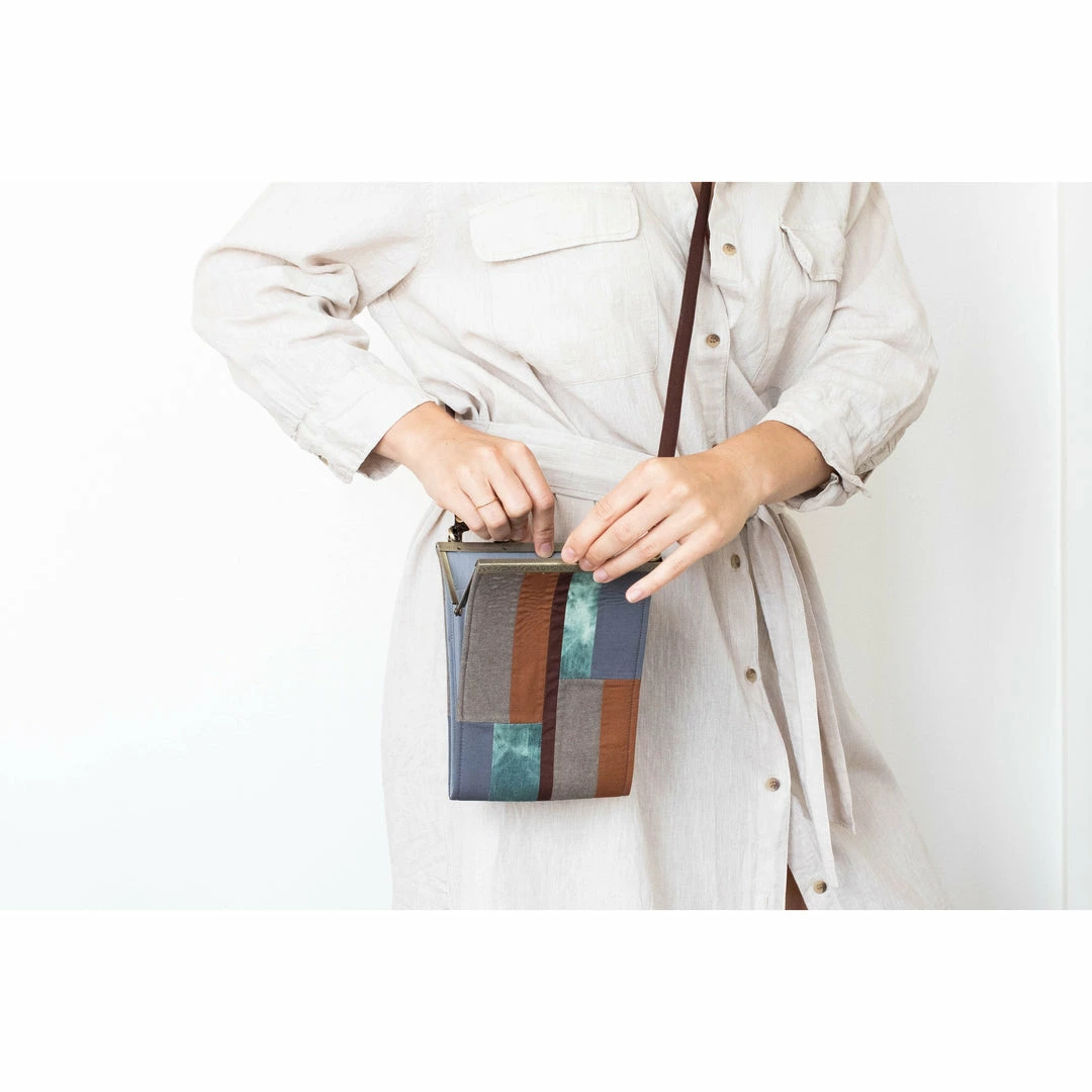 This hand dyed indigo blue shoulder bag has kiss clasp frame It’s a fabulous mixture of vintage and modern aesthetics. The fabric is hand dyed in the USA and the interior has space for your phone and other daily essentials.