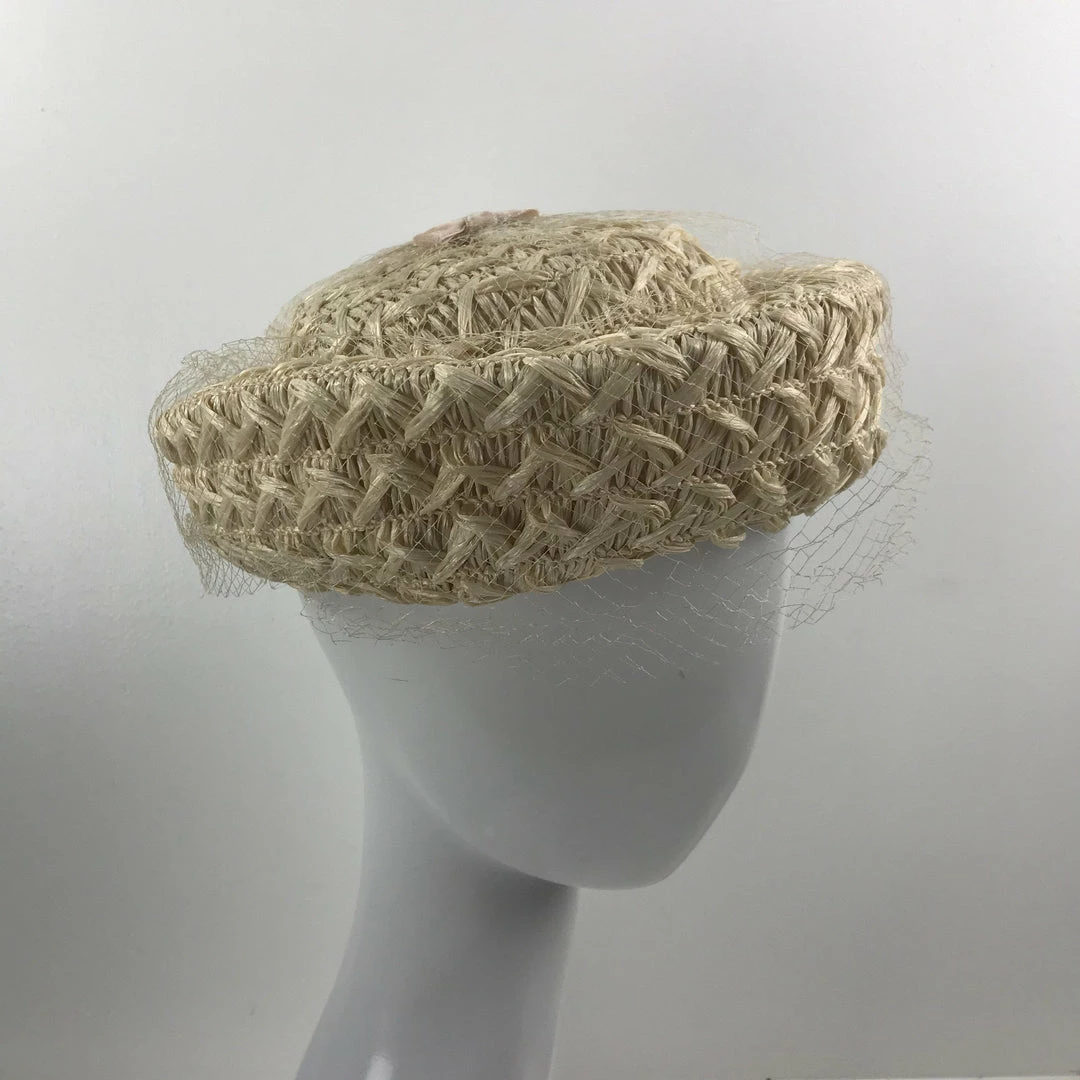 ESSE Purse Museum & Store Collections Vintage Hat: 1960’s Beige Straw And Netting