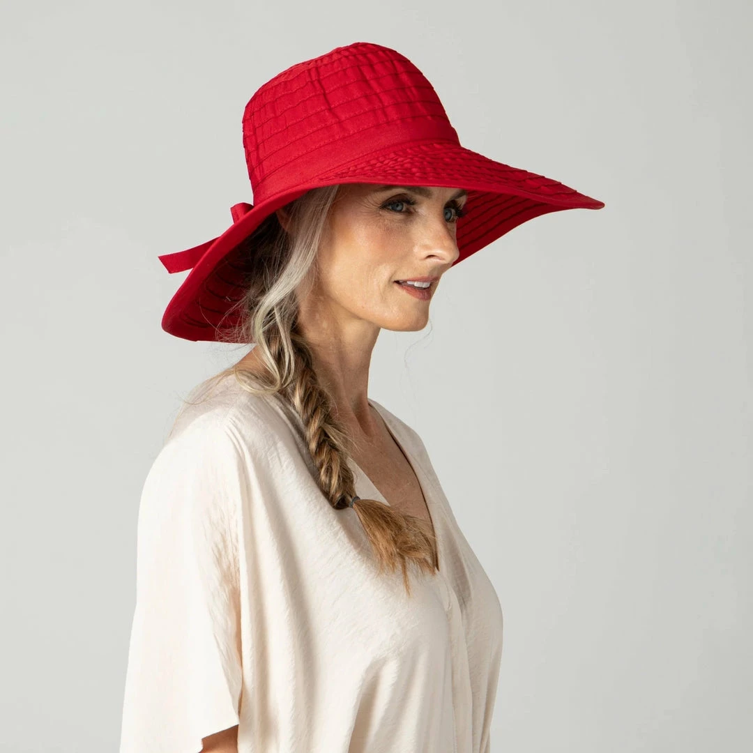 This large brim hat features our signature ribbon style with an added bow as a bonus! This hat comes in multiple color choices to match any look. Best of all it protects your from the sun and is easily packable!
