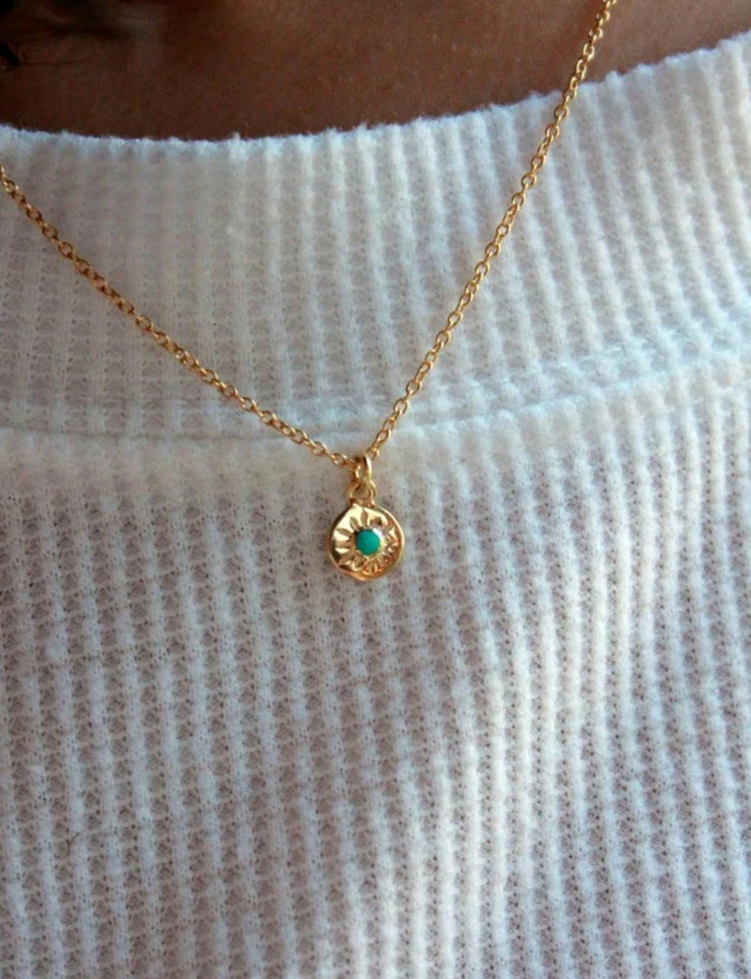 This simple staple necklace is just what your style needs! Our Turquoise Starburst Necklace – Sterling Silver is an easy necklace to wear all by itself or layered with another beautiful necklace.