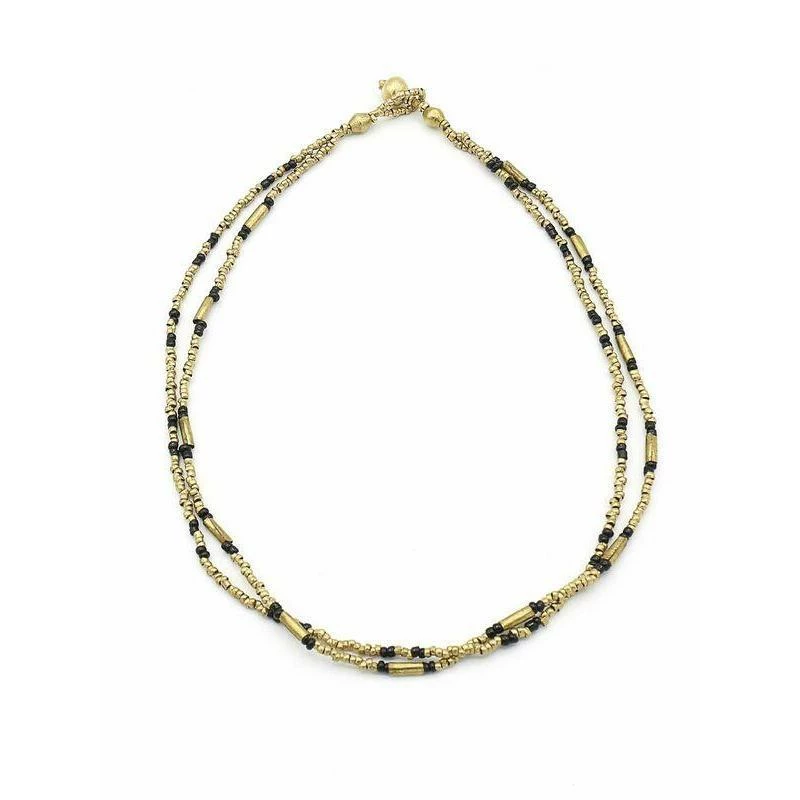 With a slightly mystical vibe, we are obsessed with this upcycled artillery necklace. Two chains are strung with recycled brass beads, a new favorite piece.