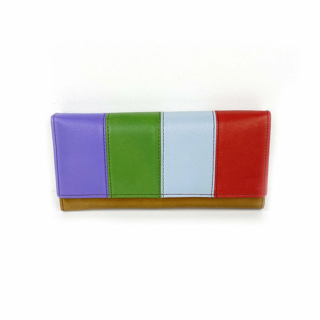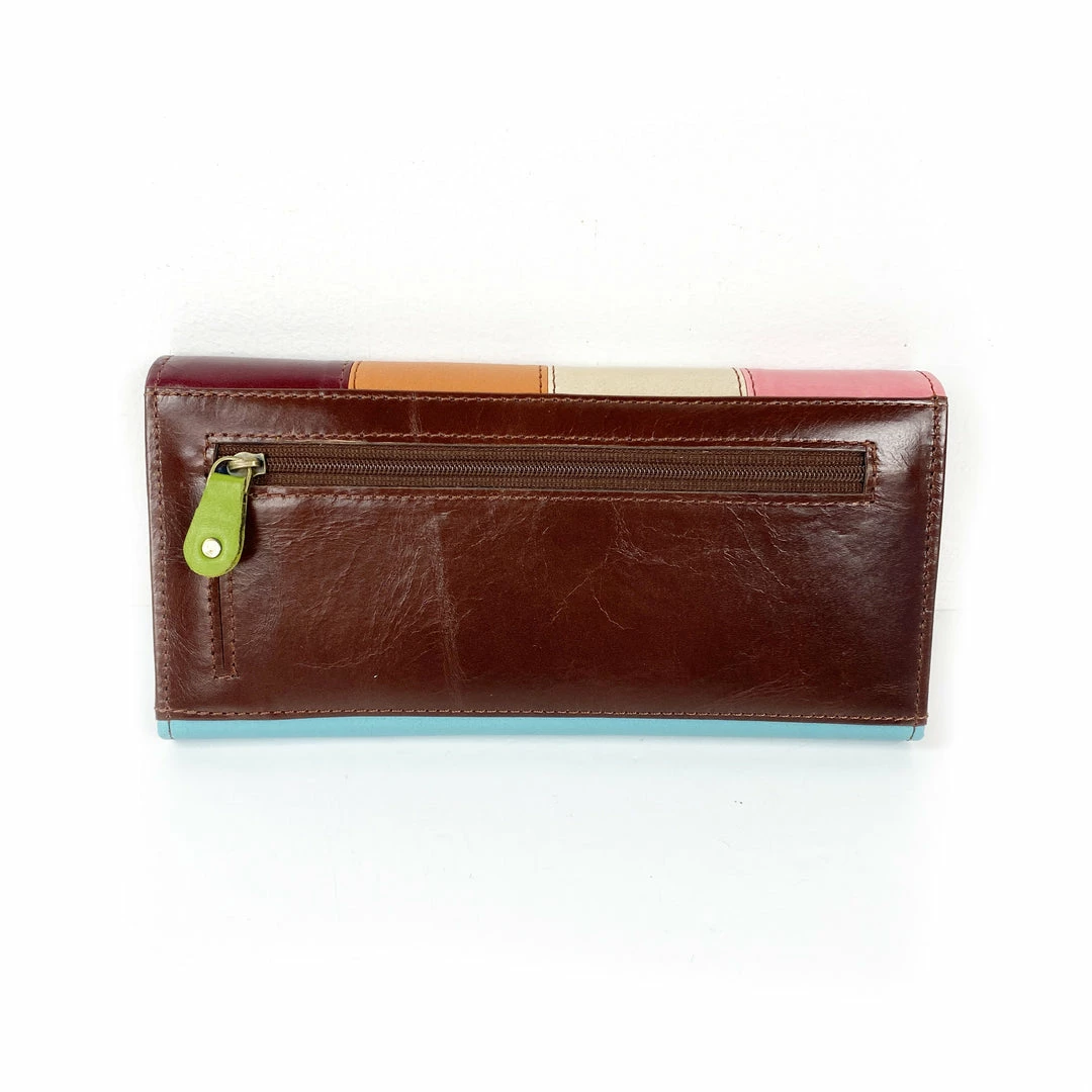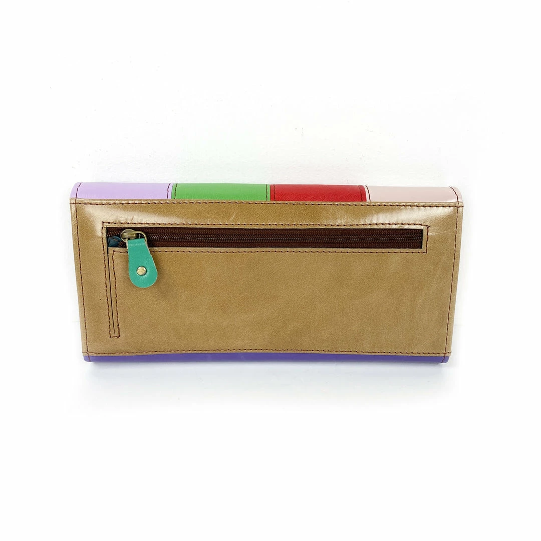 Genuine leather wallet featuring bright colors. Handmade in India.