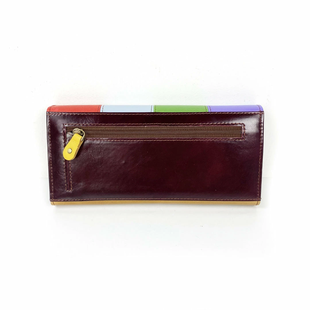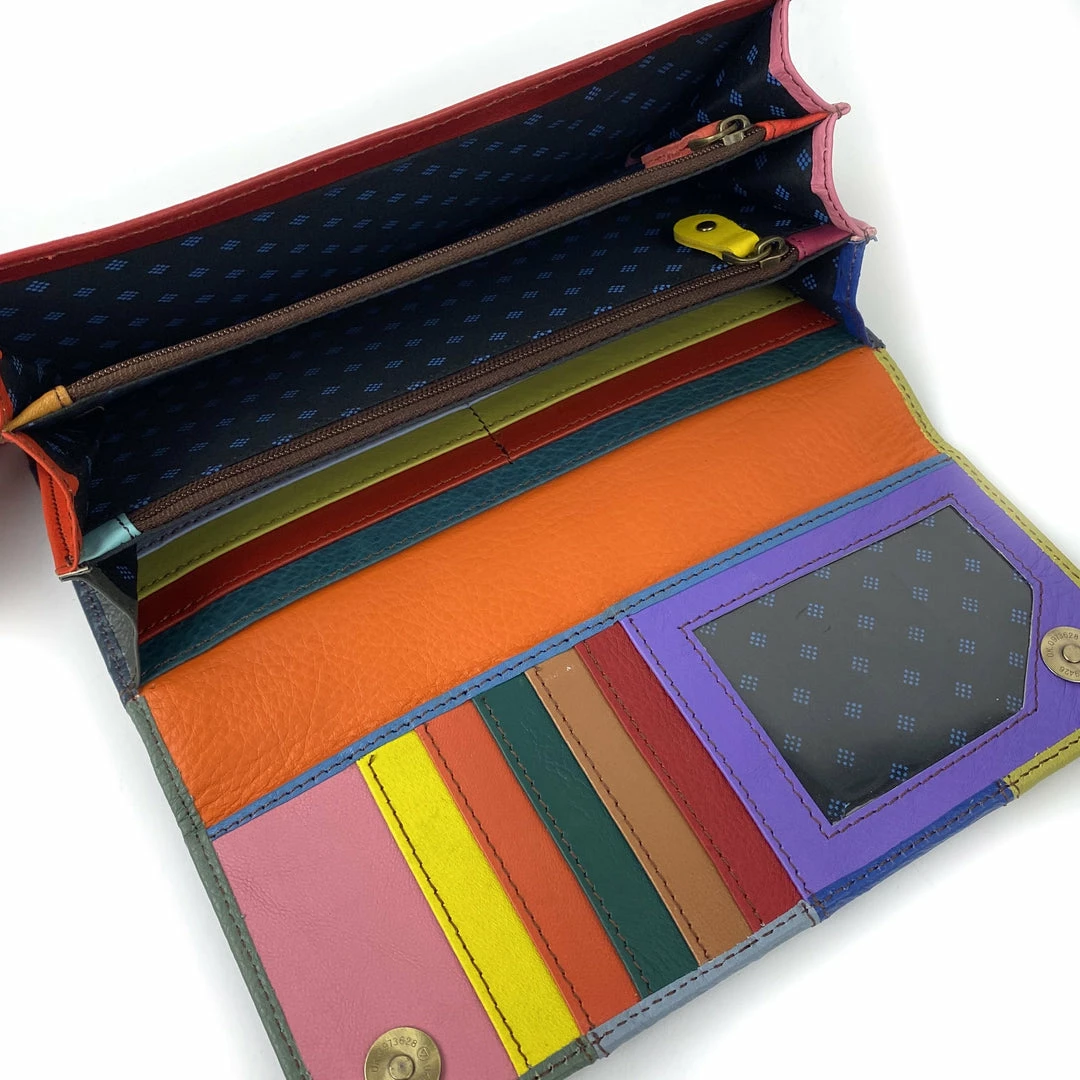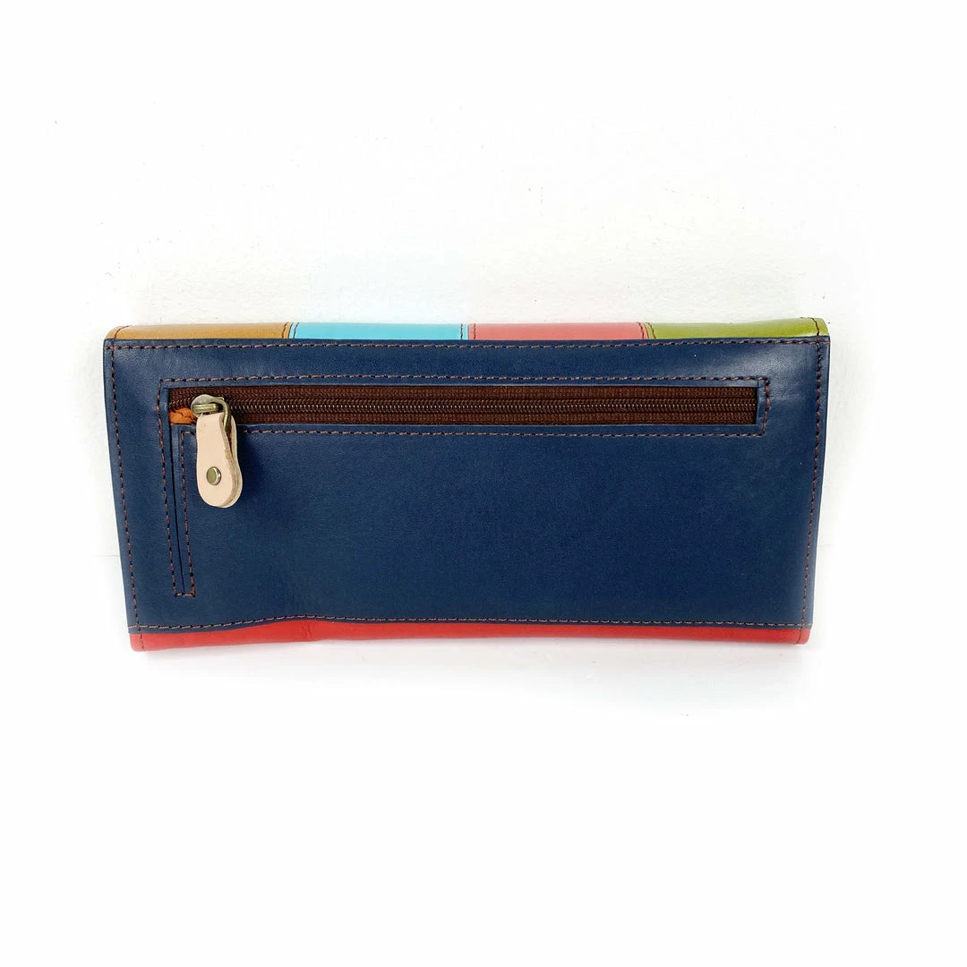 Genuine leather wallet featuring bright colors. Handmade in India.