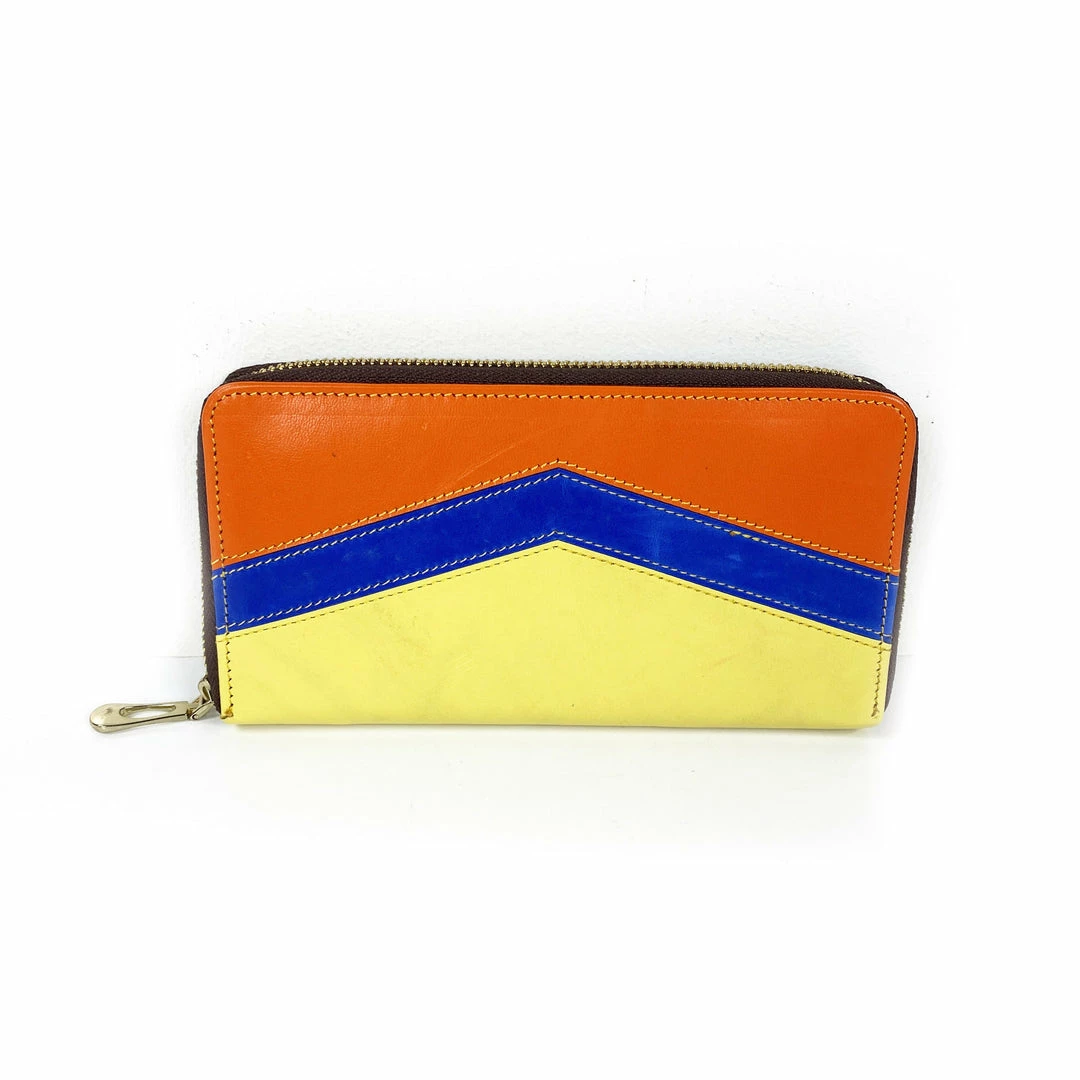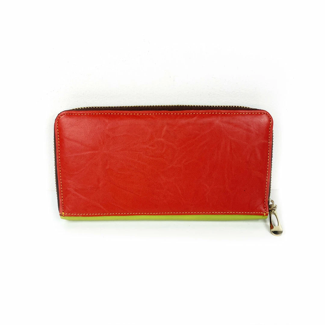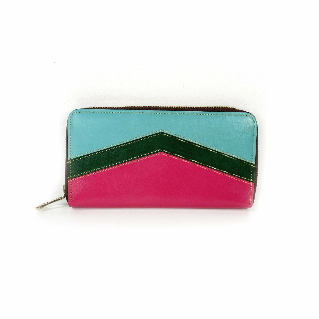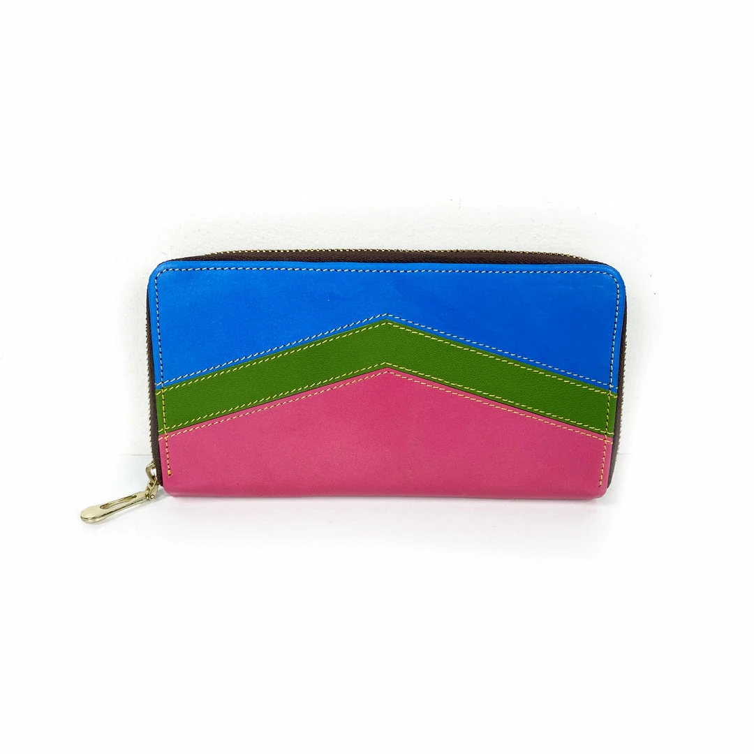Genuine leather wallet featuring bright colors. Handmade in India.