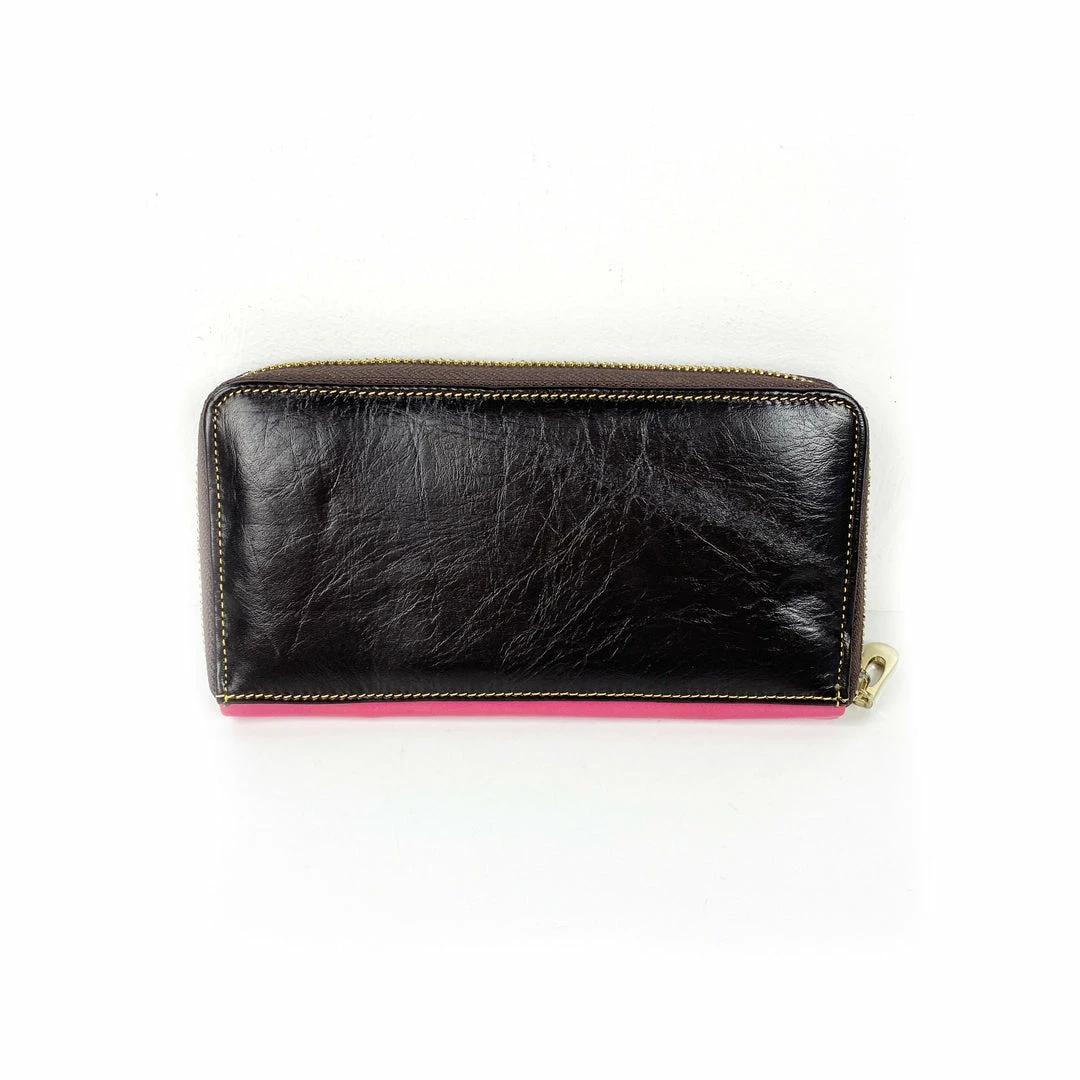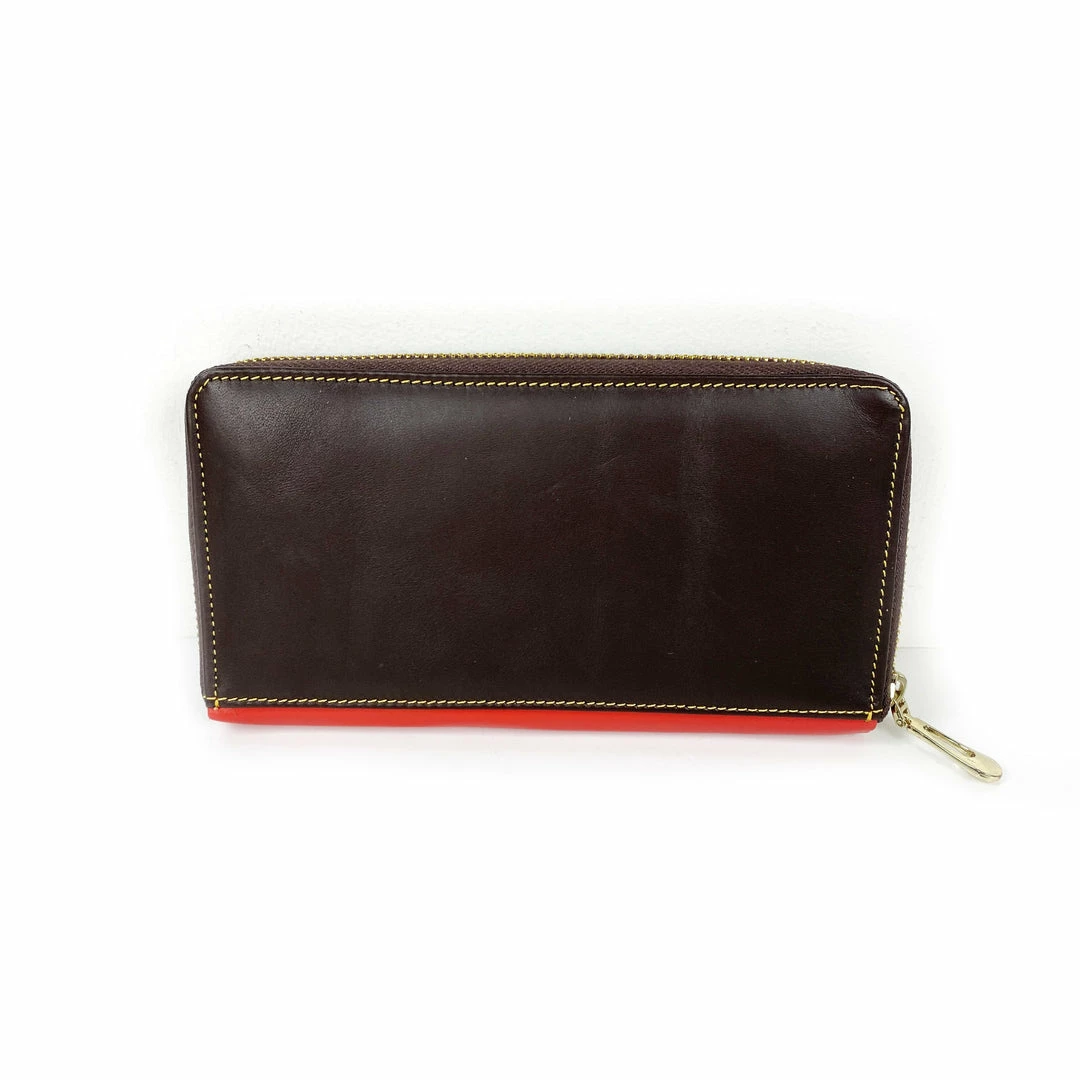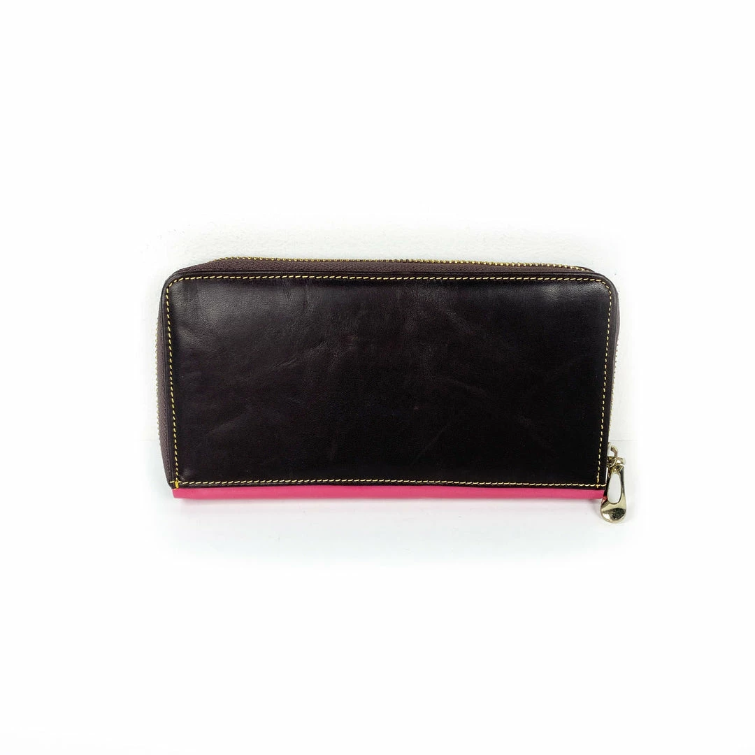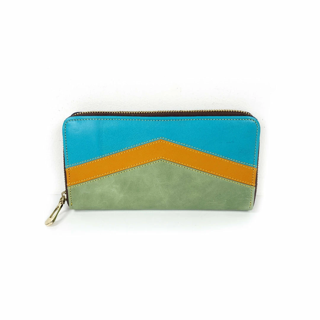 Genuine leather wallet featuring bright colors. Handmade in India.