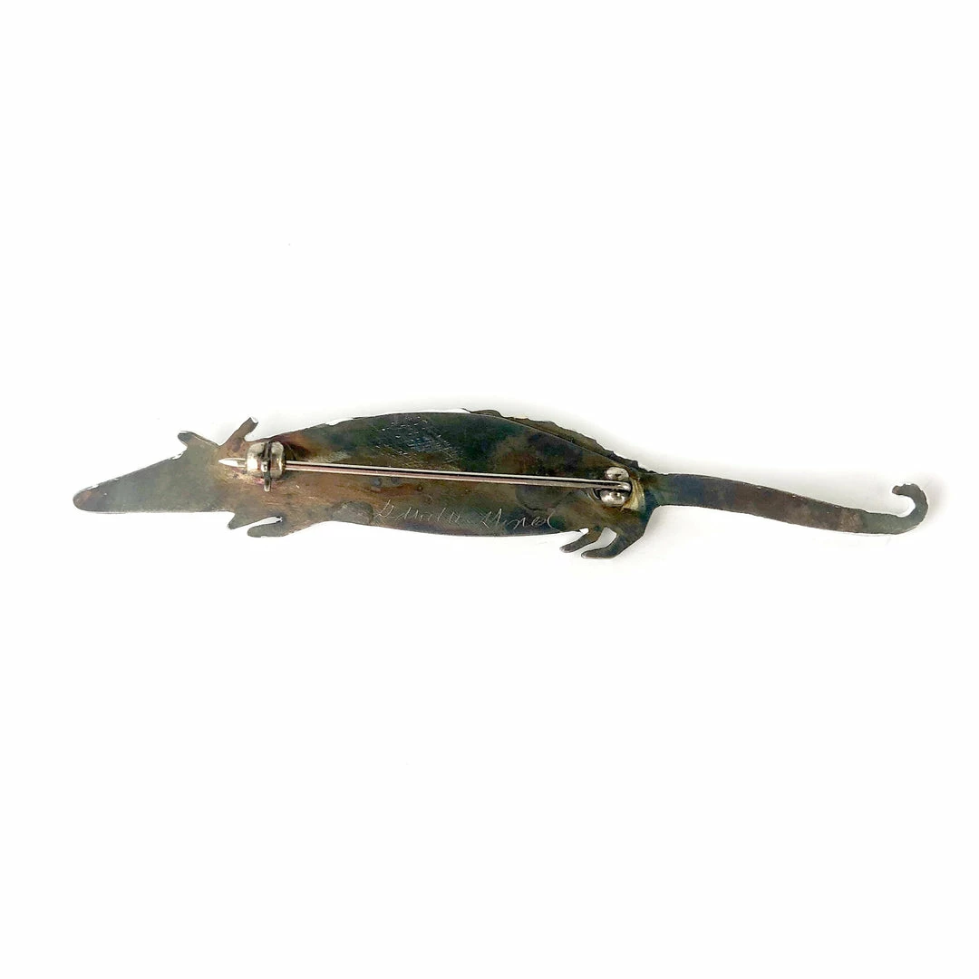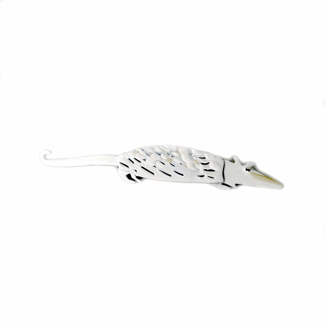 This sterling silver handmade brooch will be an interesting addition to any outfit! The normally nocturnal opossum can be dazzling during the day, its delicate fur expertly detailed in tiny flecks of gold. The Woodland Opossum broach merges nature and artistry to create a truly unique piece. Not only is the Woodland Opossum a unique subject but also Gould’s attention to simplicity allows for the smallest details to shine through. Gould’s designs are inspired by the southern coastal landscape as well as ornamentation of indigenous peoples.