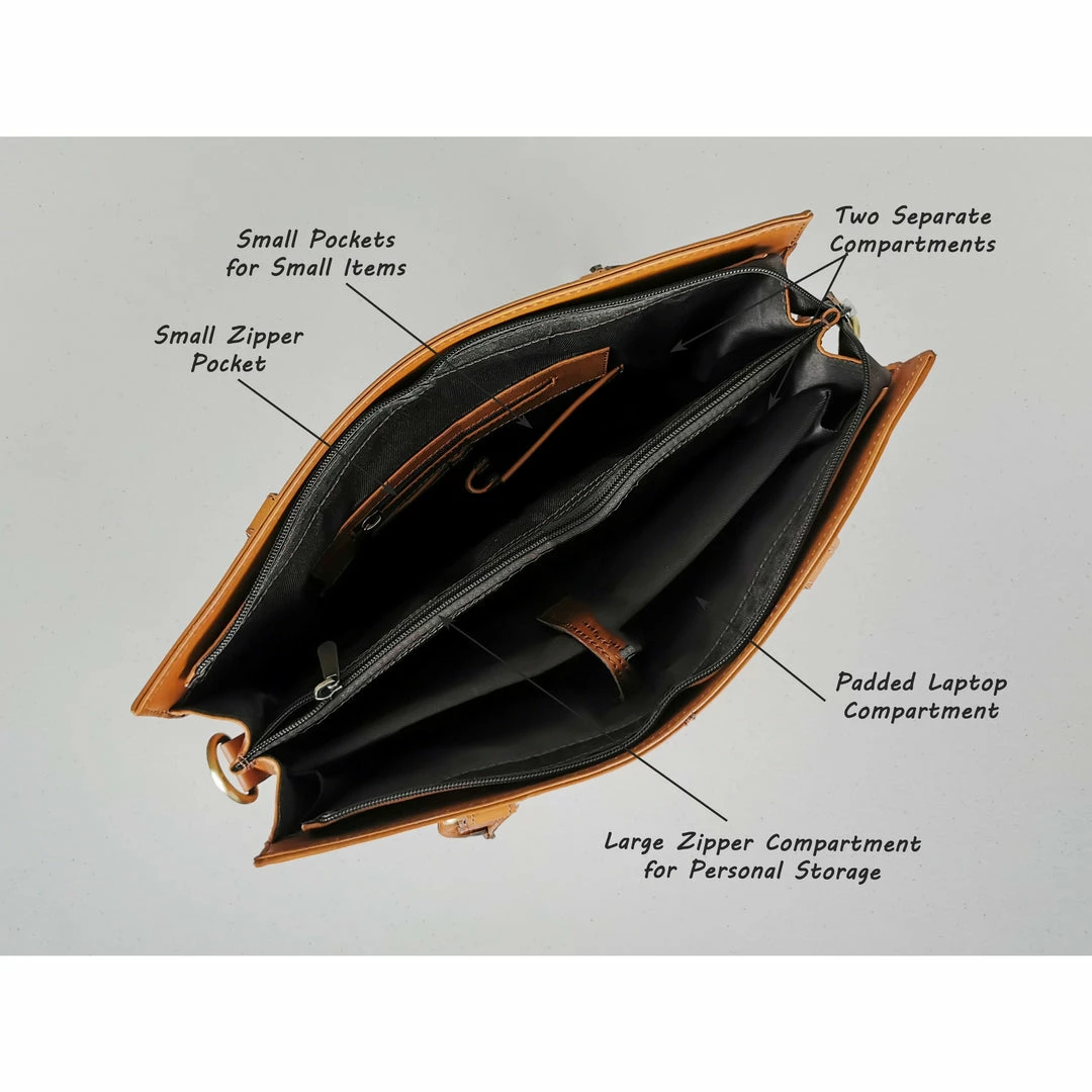 Practicality and style are marks of this Women’s leather laptop bag. A dedicated laptop compartment that can fit up to a 15-inch laptop and is still lightweight. No longer you will feel the need to change the bag when going to a party after office.