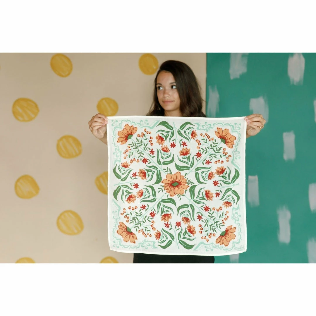 100% premium cotton, handmade and screen printed. Original artwork. This colorful bandana, handkerchief, hair tie, accessory, hankie, scarf, headband- features a modern rustic hand-drawn design. Uses include dogs or pets, a baby or babies, home decor for your wall, framed as a fine art piece, dining cloth napkin or worn as a head wrap. Have it handy in the kitchen or bath! It makes great eco-friendly gift wrap or wrapping paper, wedding decor, favors, bridal shower.
