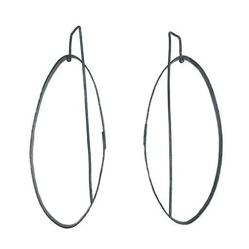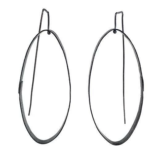 - Silhouette: hand-cut, hand-hammered, soldered oval loops dangled from ear hooks