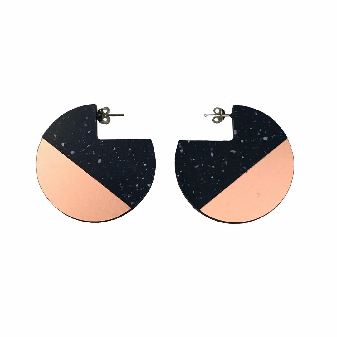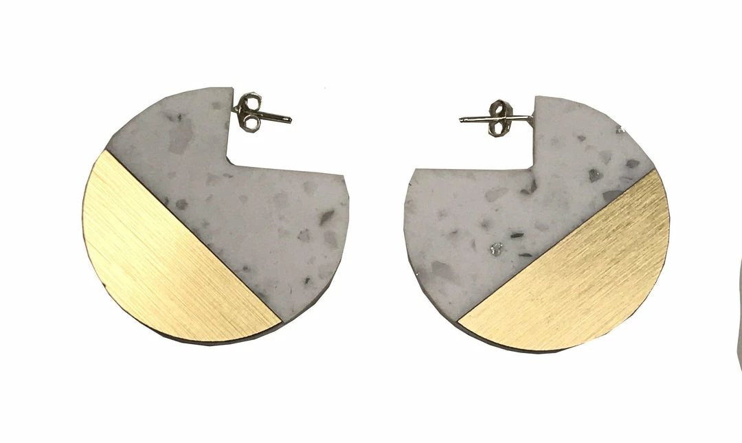 The combination of textured and sleek resin, minerals and acrylic elevates the minimal design beyond simple studs. dconstruct’s pieces are very wearable and can easily compliment a day to evening look. The eco-friendly earrings are inspired by nature and create beauty from the excess of construction materials.