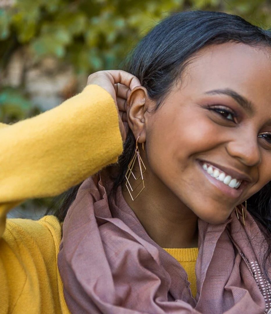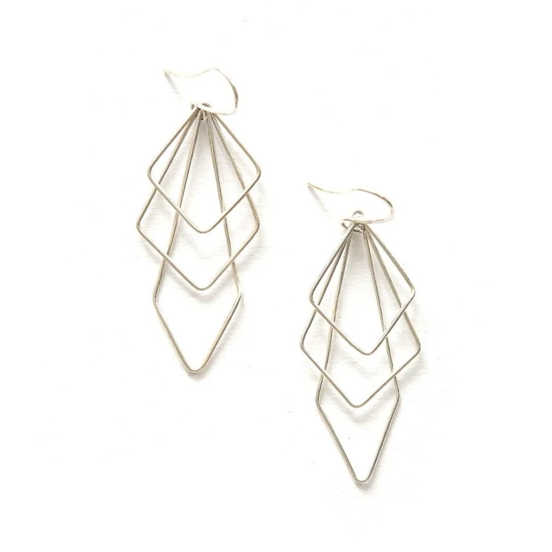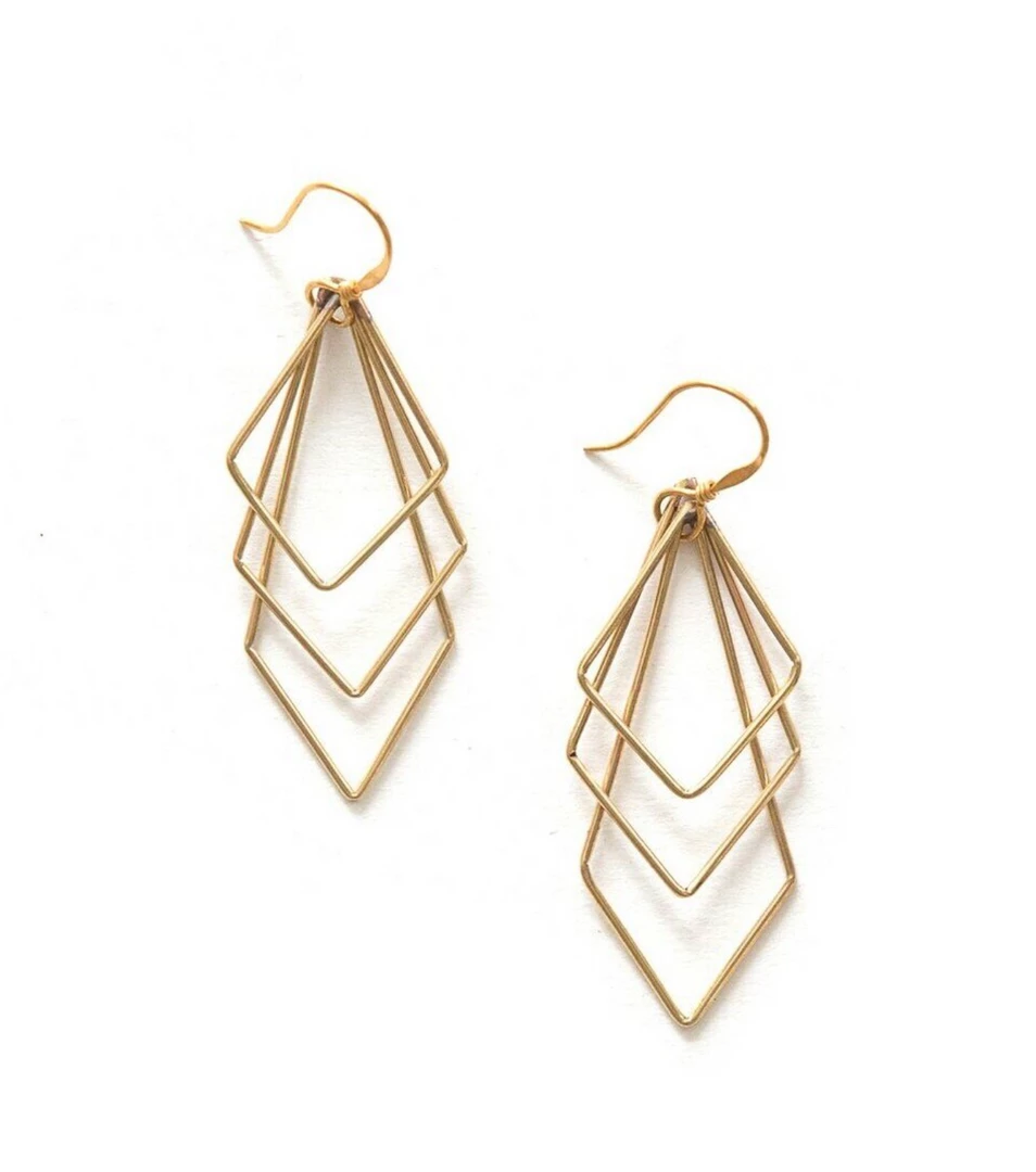 We think these earrings are the perfect silver or gold dangle earrings. With geometric shapes dangling together, this is an easy accessory to add to your look.