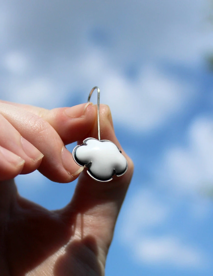 Do you ever just want to reach out and grab a fluffy cloud? Now you can with the Cloud Dangles from metalsmith Lisa Crowder. Set in copper with oxidized sterling silver, the kiln-fired, vitreous enamel clouds pop in their minimal yet bold design. The simplicity of the dangles serves to highlight the lightweight cloud design. Imagine the fun of wearing these to an outdoor gathering or even as quirky accessories for that LBD. Be it casual or dressy, keep your head in these clouds.
