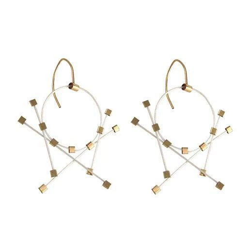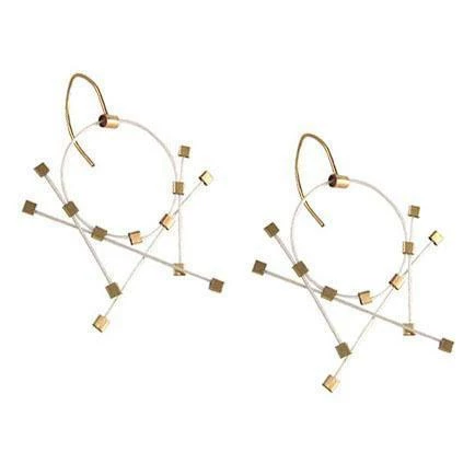 - Silhouette: single silver wire circle clustered with gold accents mounted on ear hooks