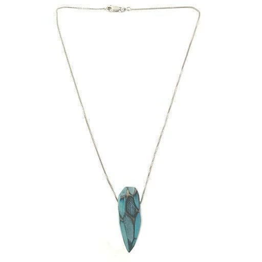- Silhouette: faceted, teardrop-shaped pendant on silver chain
