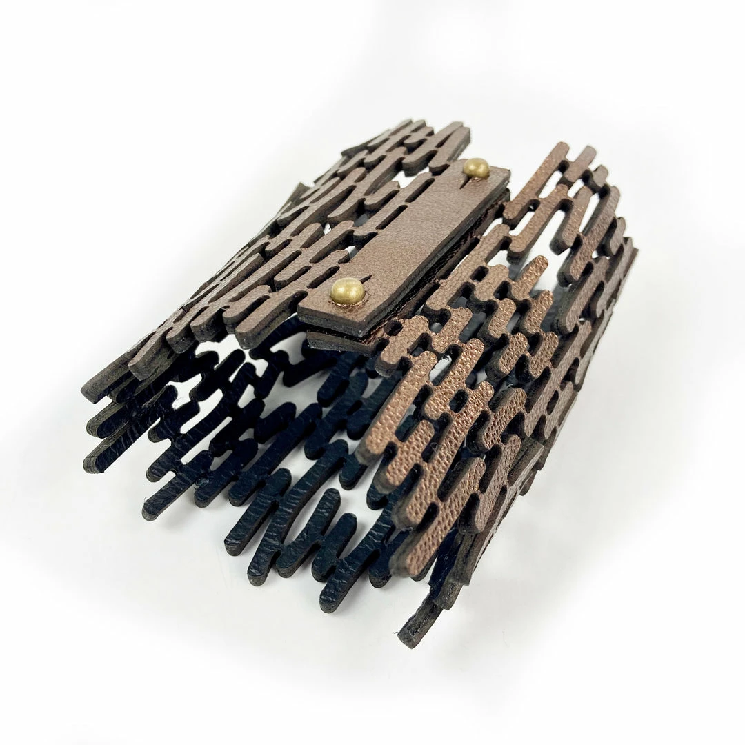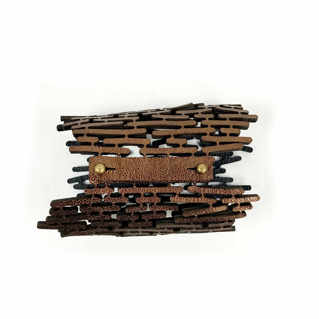 - Material: metallic brown leather