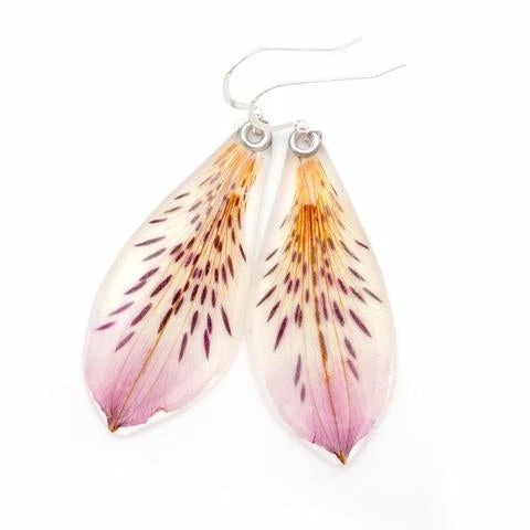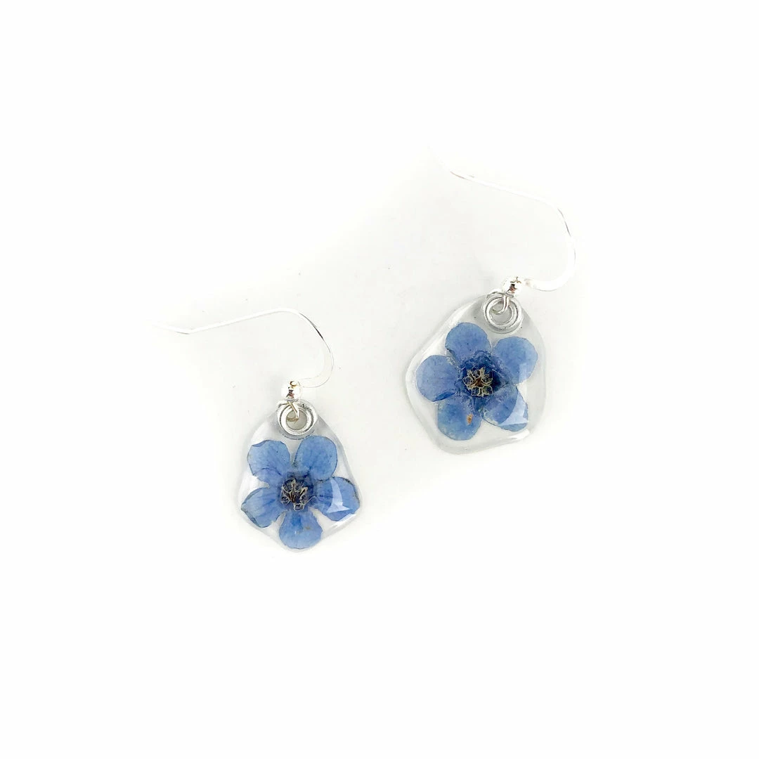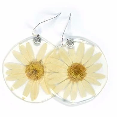 Real pressed flowers, preserved in crystal clear, glass hard jewelry grade resin, using our proprietary process. We do our best to match earring pairs as closely as humanly possible, but please understand that no two flowers are completely identical, and that is a large part of their charm. If they were identical, chances are they’d be made of plastic!