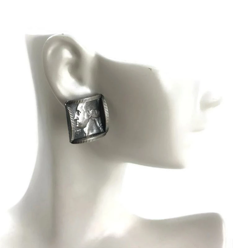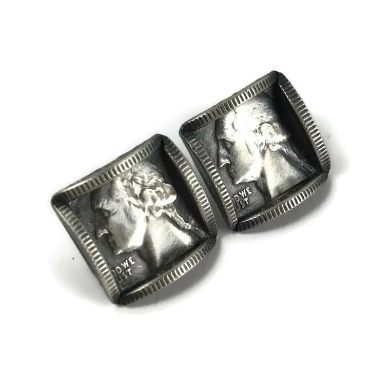 Before 1965, US quarters were made of 90 percent silver and they are the material for these stunners. Delicately hand-pierced, the studs rest on sterling silver posts with strong bullet clutch ear nuts. Whether you’re a HUGE fan of our first President or just love something unique, these earrings are for you.