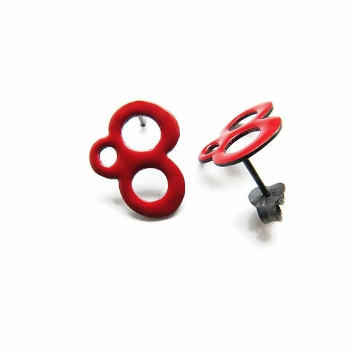 Striking red enameled stud earrings, very comfortable to wear every day, and totally flattering. These red earrings will add a touch of bright color to your outfit, and will give light to your face. These Red Enameled Stud Earrings are made of silver and enameled in bright red.