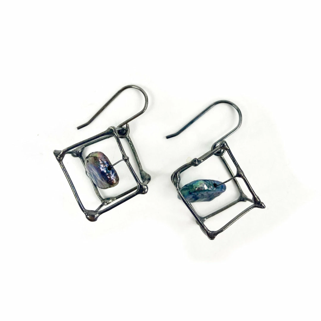- Special Feature: cube moves freely on the ear hooks and the pearls are strung on the wire through the center of the cube and also move.