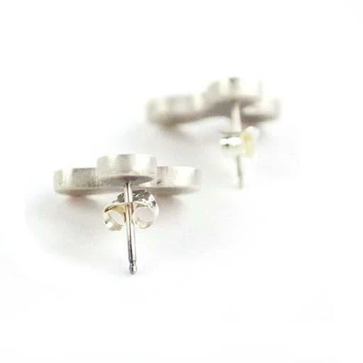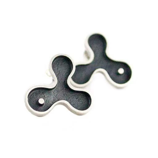 - Silhouette: silver contoured shape with oxidized background mounted on posts