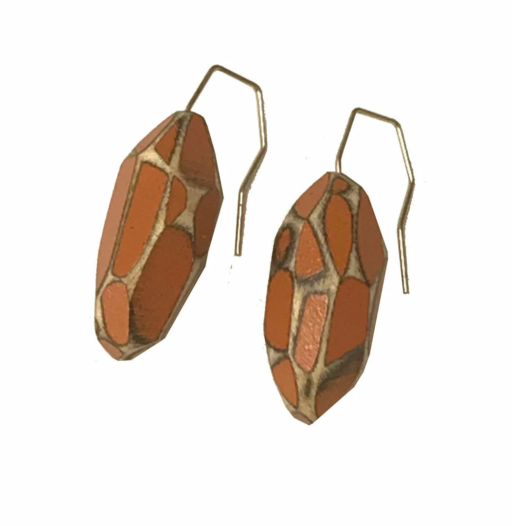 - Silhouette: faceted, asymmetrical geometric cuts mounted on sterling silver hooks