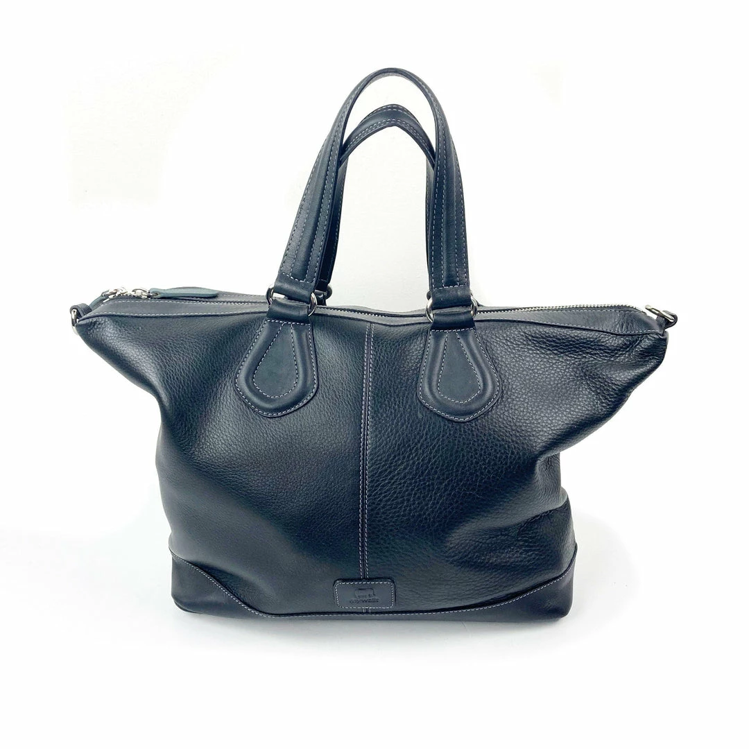 - Strap: one adjustable/removable leather shoulder strap and two 6″ drop handles
