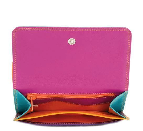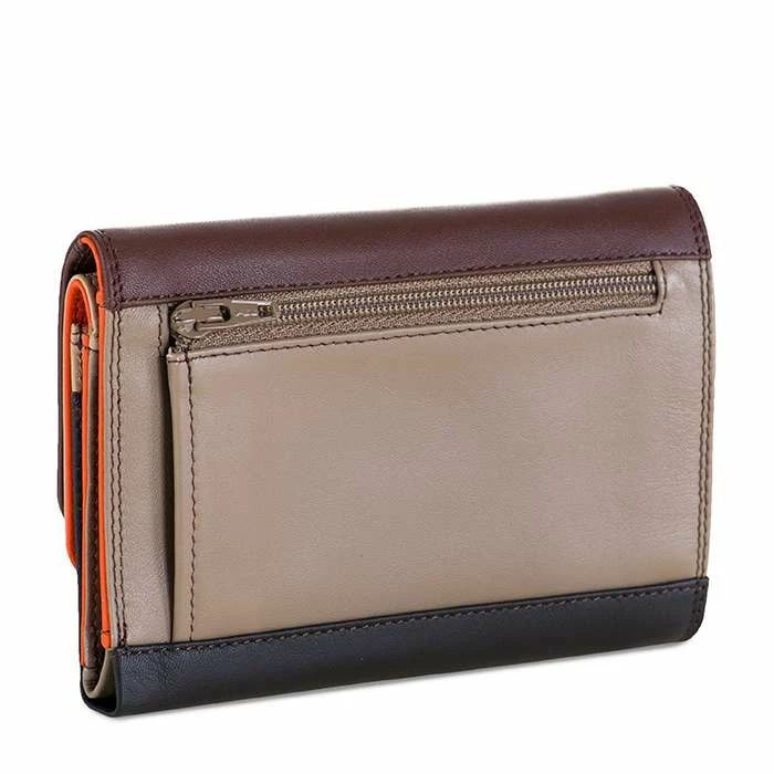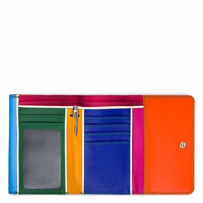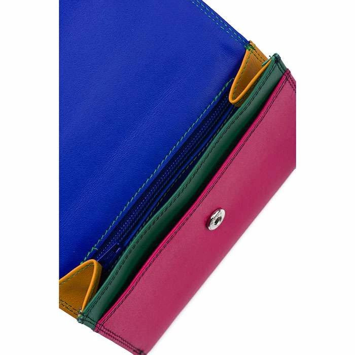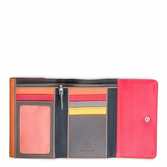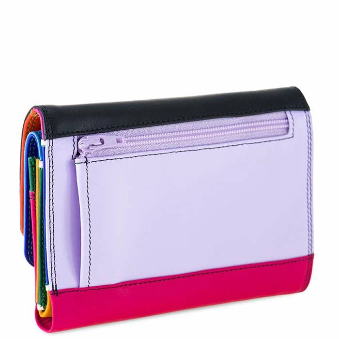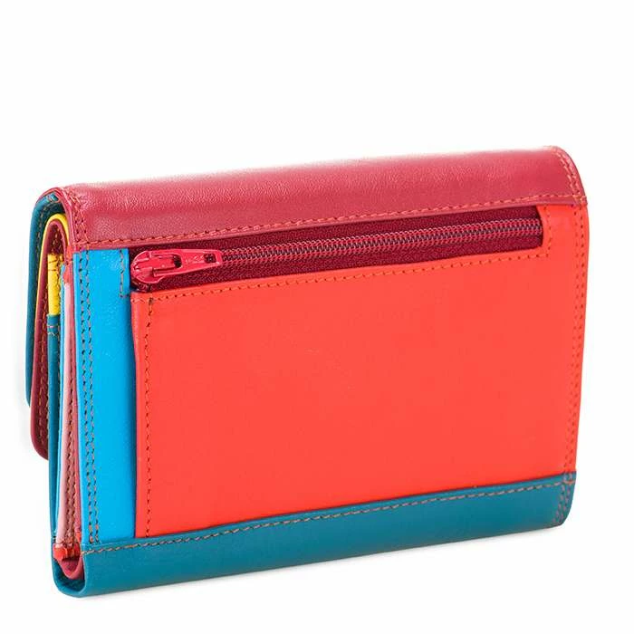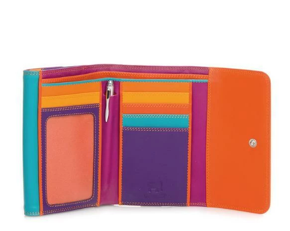 This luxury Italian brand promises innovative style, daring colors, European quality, and avant-garde designs. This trifold double flap wallet delivers a sleek, spacious, medium-sized organizer with a modern twist!