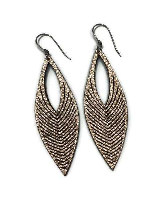 Handmade in New Mexico, Oropopo’s intricate leatherwork and artisanship, inspired by Native American and Western styles and history, comes through in the Chevron earrings. The Chevron pattern is inspired by Navajo weaving patterns and the lightweight leather make these great for wearing all day. With colors ranging from matte black to shimmering silver, the Chevron will transition from casual to evening looks with ease.