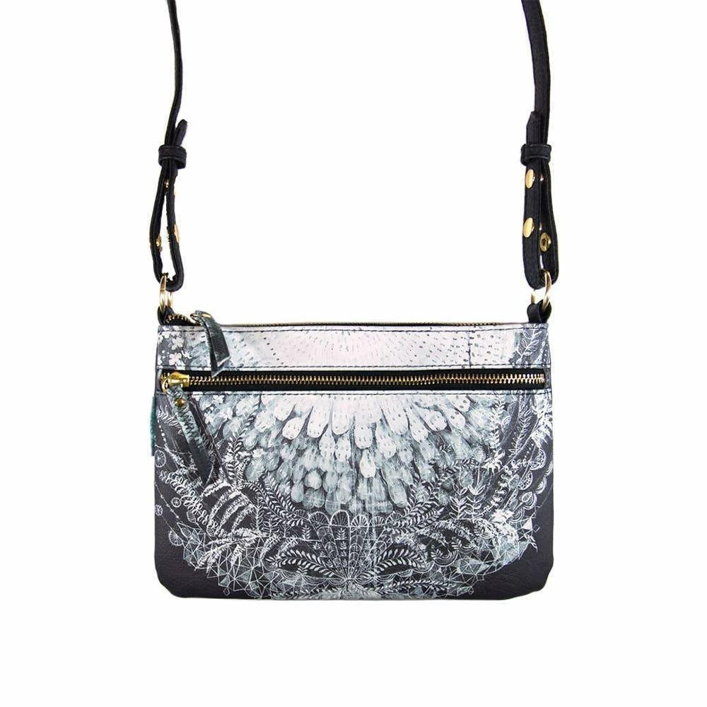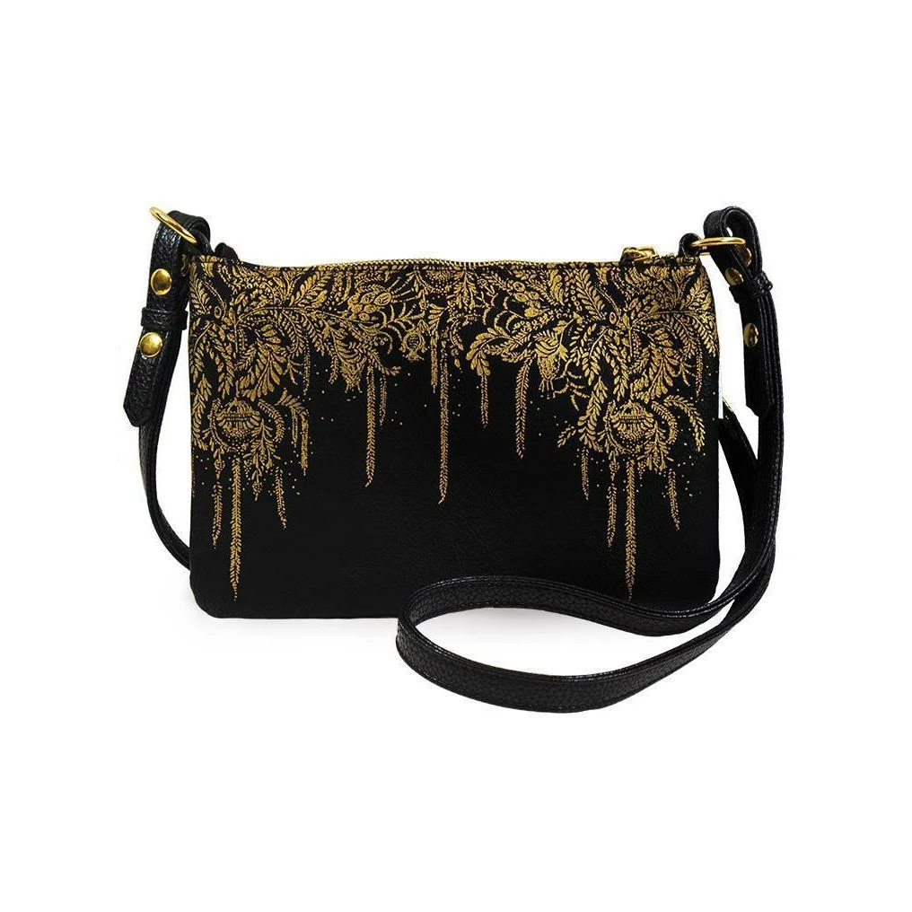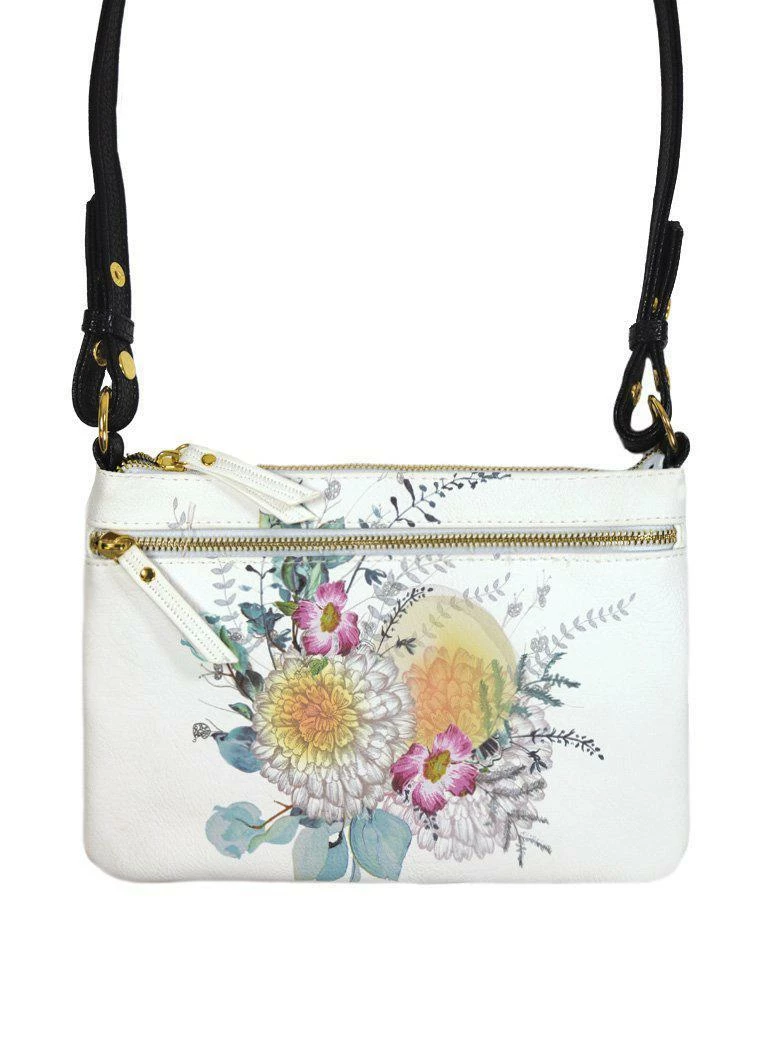 Get lost with this crossbody companion. At 10.5″ wide and 7″ tall it is the perfect size to carry around your phone, keys, and lip gloss. The crossbody strap is adjustable up to 24″ and the bag features an outer zipper pocket on one side. Beautifully finished with vegan leather straps, inner pouch pocket, and golden hardware.