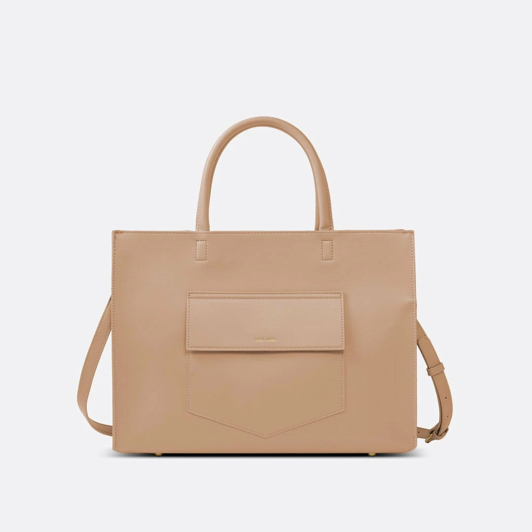 Look no further for your new work bag. The Caitlin Tote has a convenient laptop compartment and features hidden pen loops and a slip pocket.