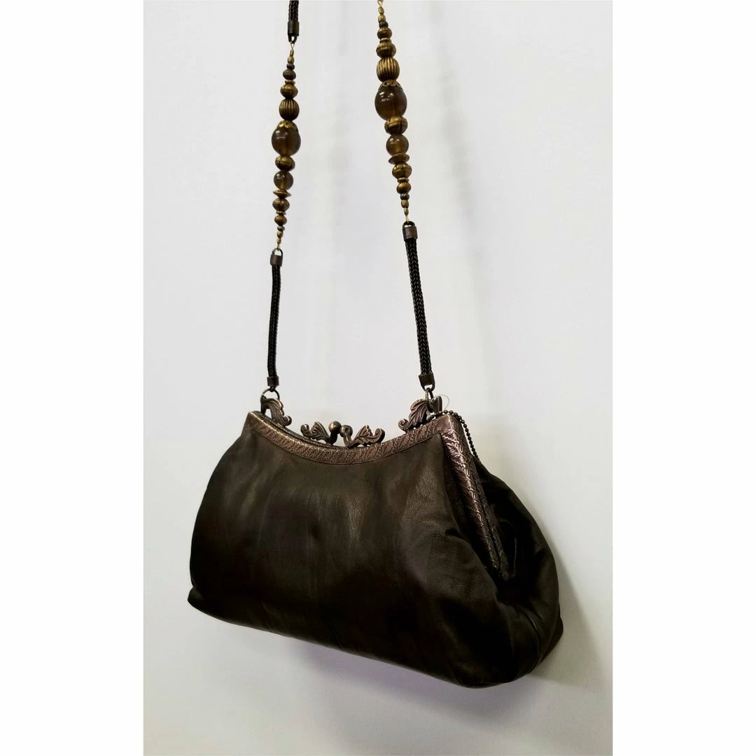 Handcrafted in India, this Vintage-inspired black handbag is perfect for lovers of Victorian style and antique design elements. TALK ABOUT DETAIL! From the engraved frame with kisslock top closure to the beaded shoulder strap, vintage design details are used tastefully throughout. What about our modern needs you ask? The interior features a zippered pocket as well as a slip pocket for phones!