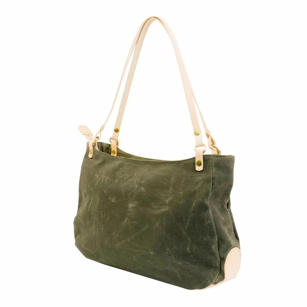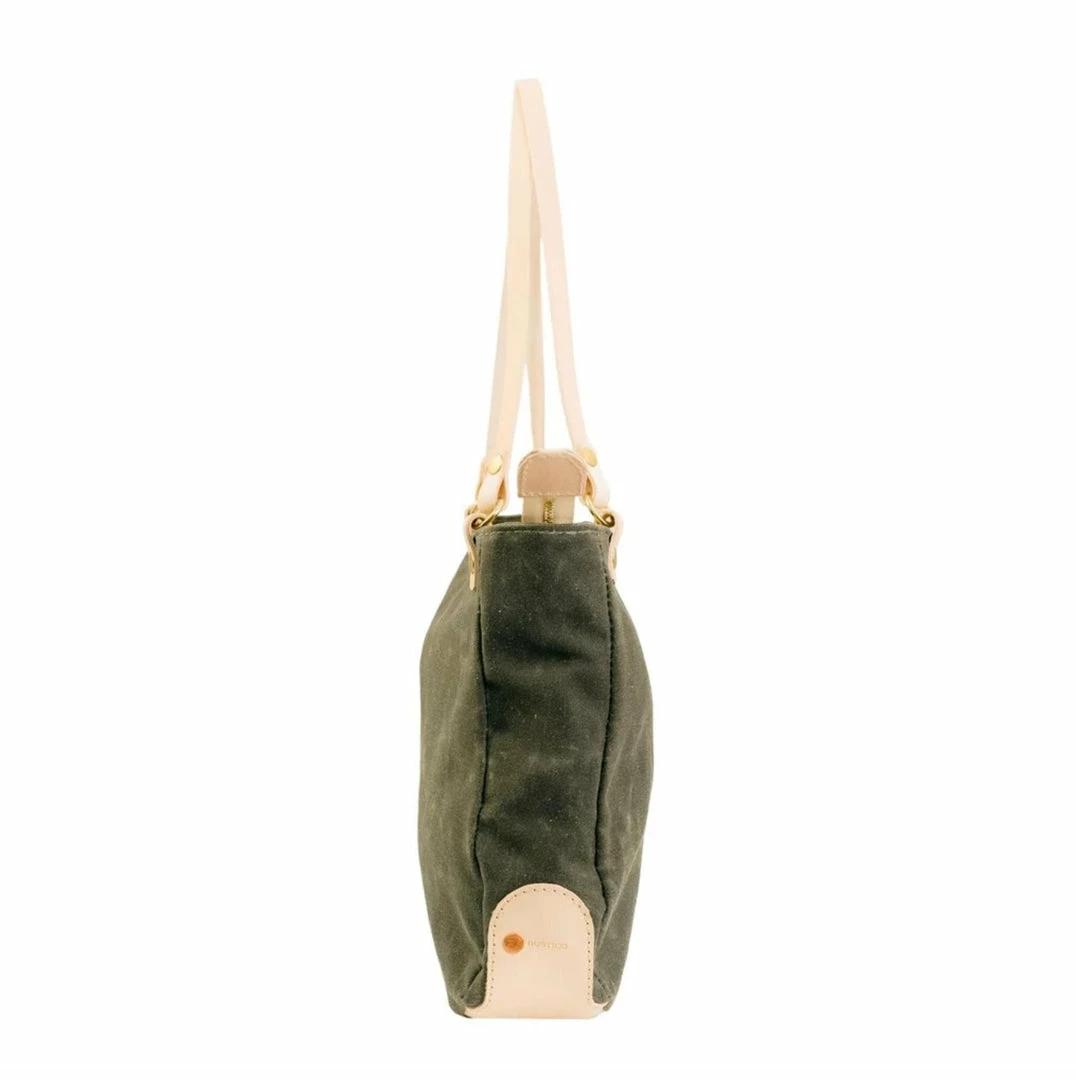 With a full-body constructed in waxed canvas and natural, vegetable-tanned leather accents come your new favorite carry-all tote. Featuring durable leather straps with brass hardware, one interior zippered pocket, one interior magnetic closure pocket, and one interior key clip. Cotton-lined interior. Toss in your wallet, keys, phone, books, and journal. The perfect size makes this tote ideal for everyday use.