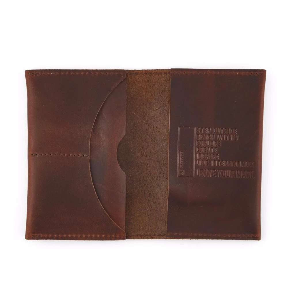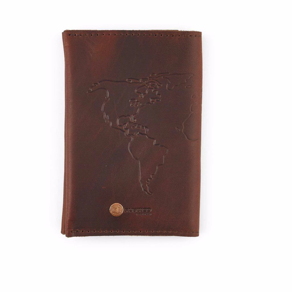 The Grant Leather Travel Wallet provides all the essential space needed for the international jet setter. Secure your passport in the main compartment along with cards, boarding passes, and money in the other pockets. This wallet comes debossed with custom globe artwork and is handmade from top-grain leather. Enjoy your travels!