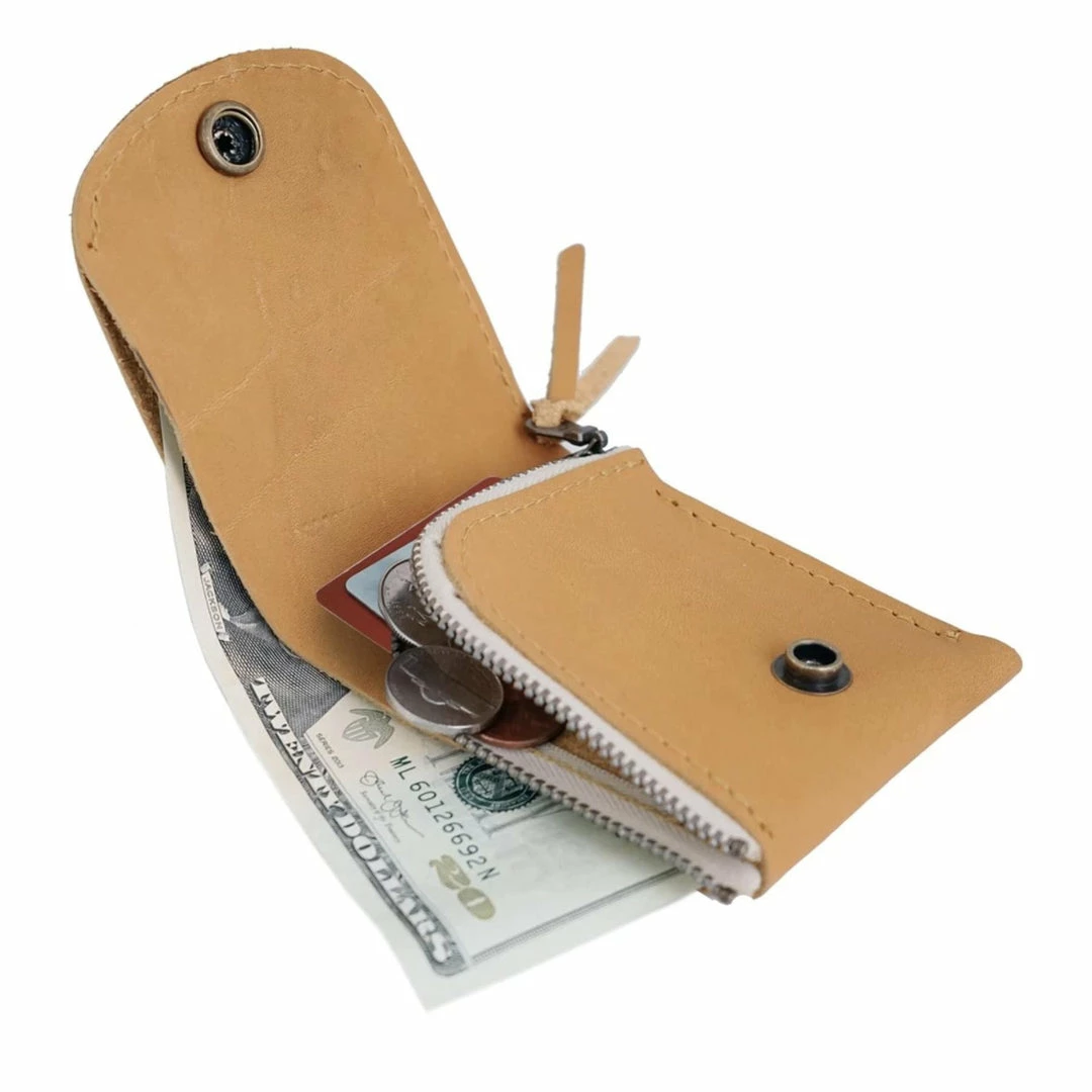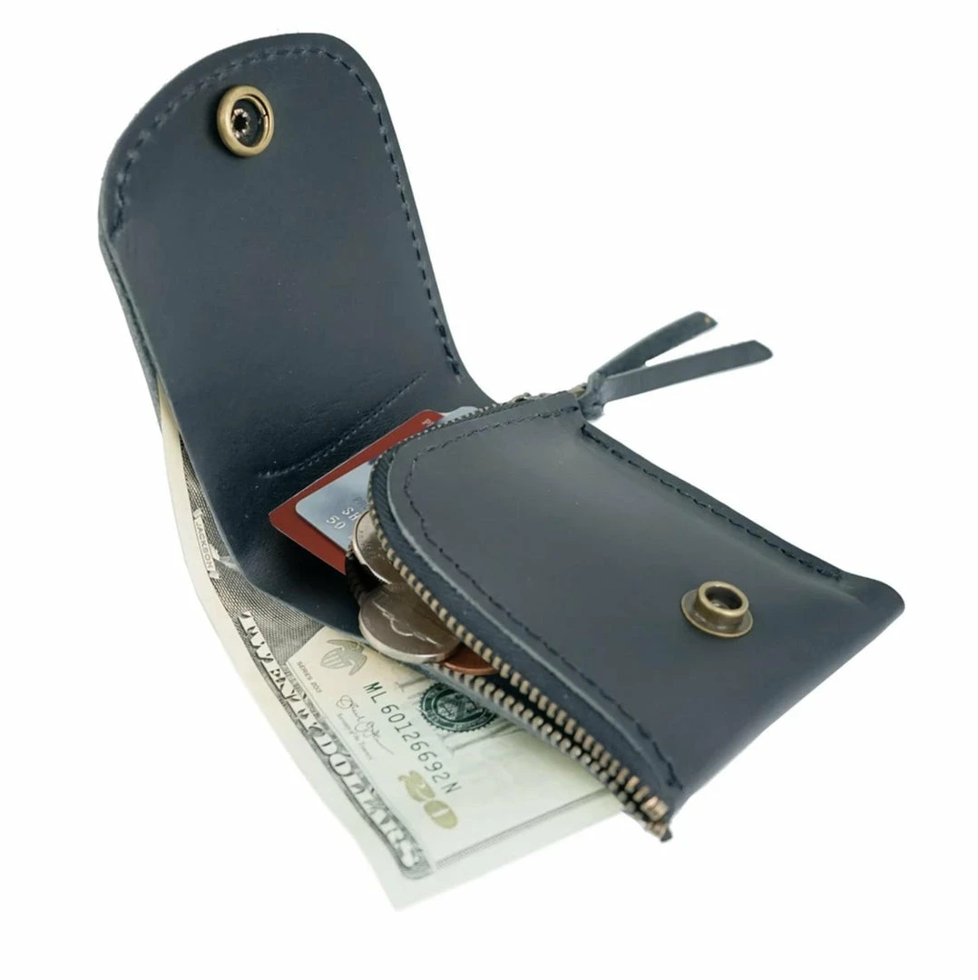 Small but packed with utility. The Haven is a bifold-style wallet handcrafted with top-grain leather, antique brass hardware, and neat machine-stitching. The interior has a zippered coin pocket with a leather zipper pull, a compartment for bills, and a card pocket to hold 5-10 cards. The Haven has a secure snap closure to keep contents safe.