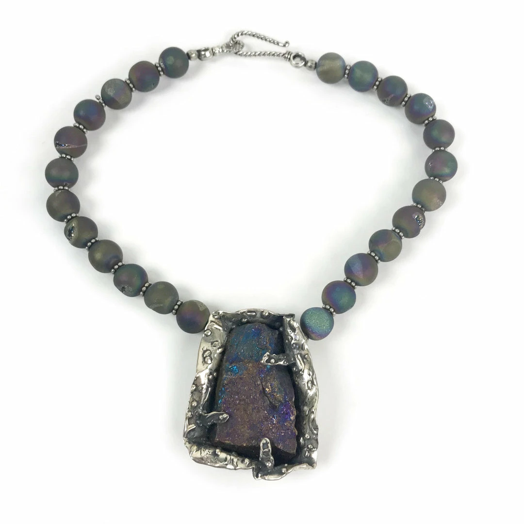- Materials: purple druzy stone set with PMC (precious metal clay)