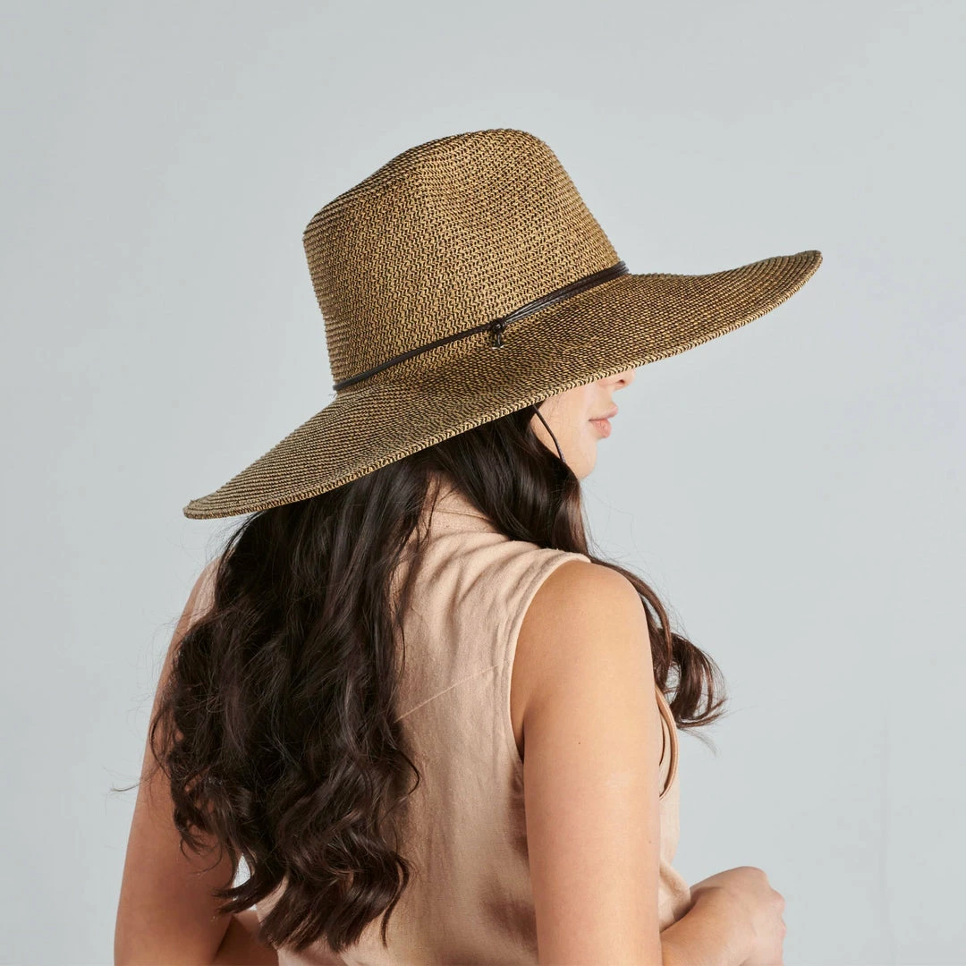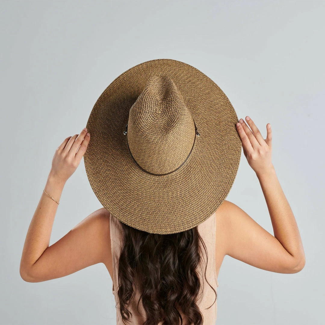 This hat features a pinched crown with a large brim perfect for keeping the sun off of your face! Features an inner stretch band and chin cord to help stay in place.