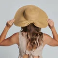 Round crown floppy ultrabraid sun brim with gathered back and knotted wrapped trim