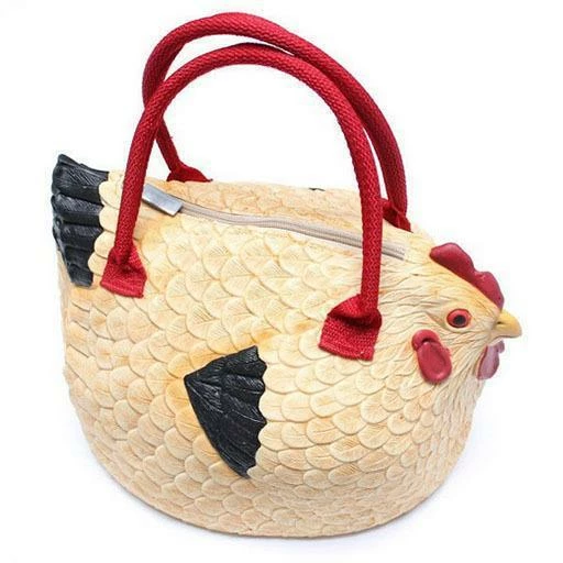 This delightful, crowd-pleasing chicken purse is all you need for a unique take on your personal style. How can you say no to this funky little gal?