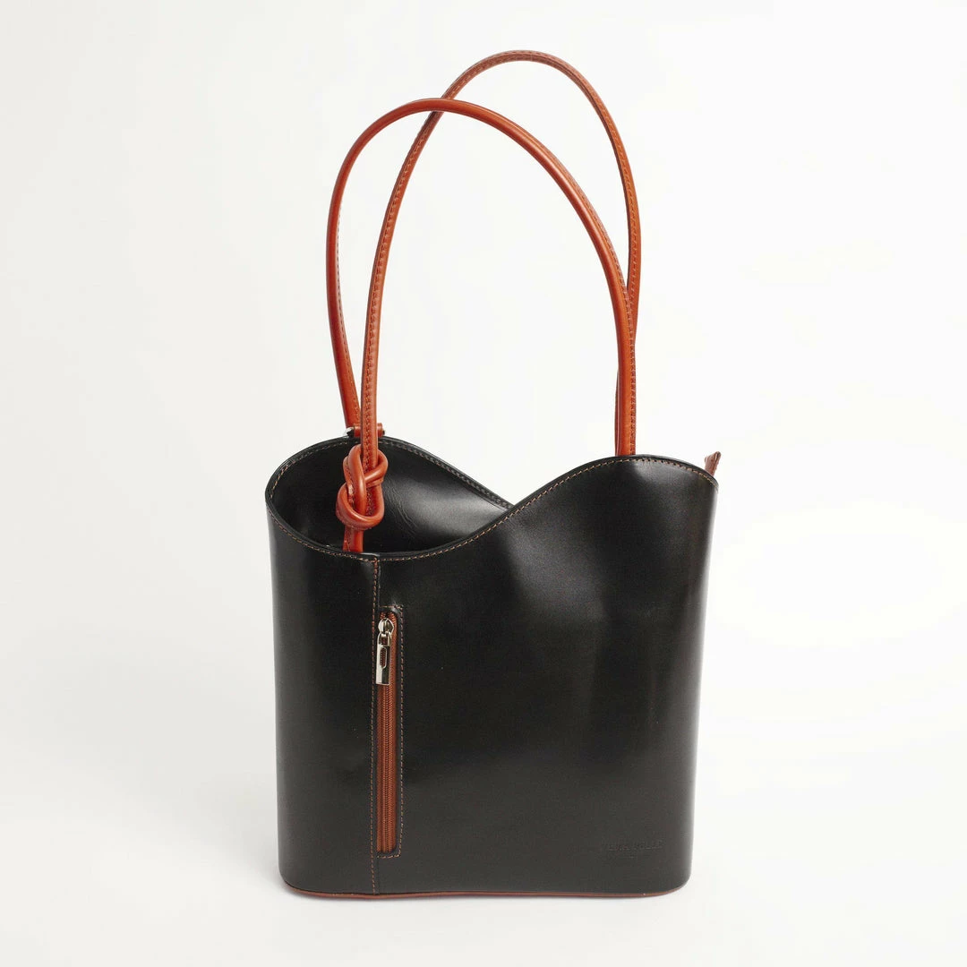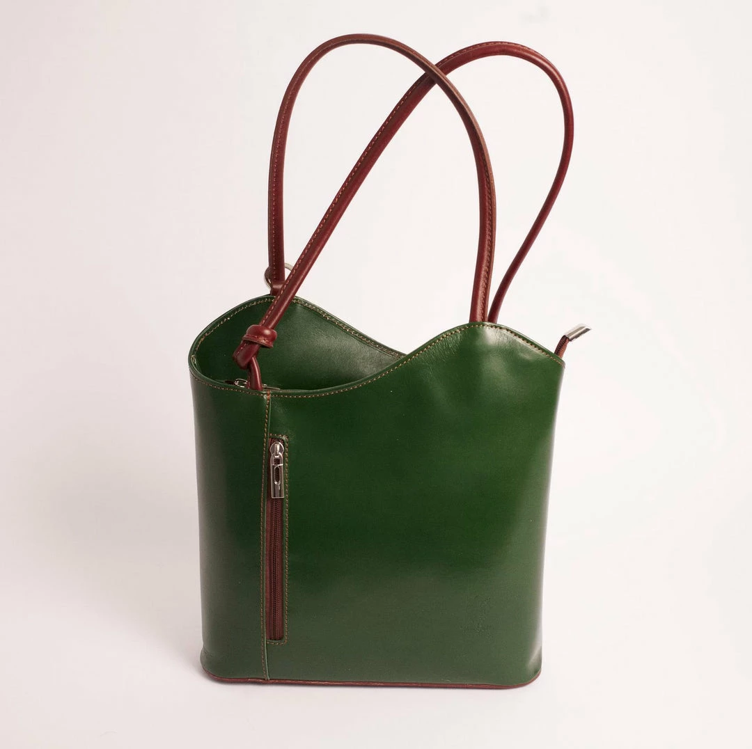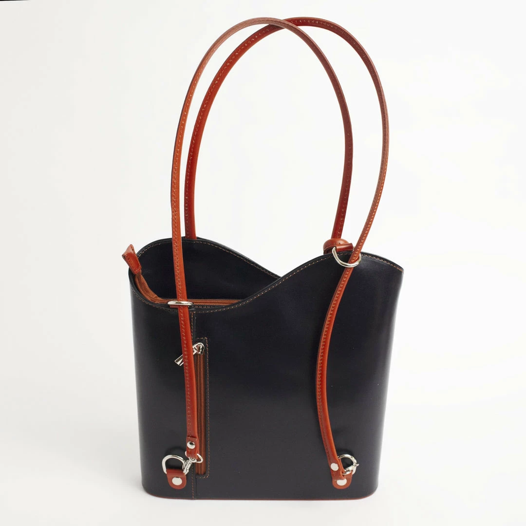 A backpack or a shoulder bag? How about BOTH! The Varese from Solo Perche is the convertible luxury bag you’ve been waiting for! Handcrafted from sleek, soft Italian leather, this unique bag converts from a shoulder bag to a lightweight backpack simply by pulling down the straps. No fussing with attaching and detaching numerous straps! The exterior features two zippered pockets on the front and back for slipping your phone, keys or wallet in for easy access. Unzip the main compartment for enough room to carry a small laptop or tablet with a zippered pocket for additional storage. For the woman who loves options, luxury and craftsmanship, the Varese is for you!