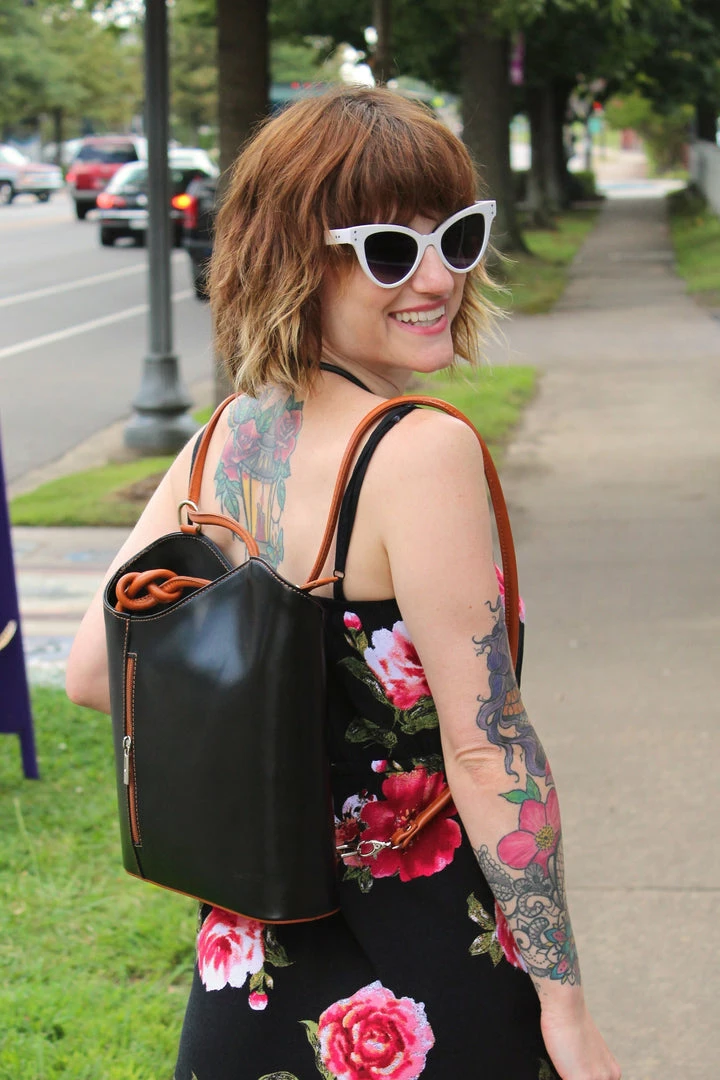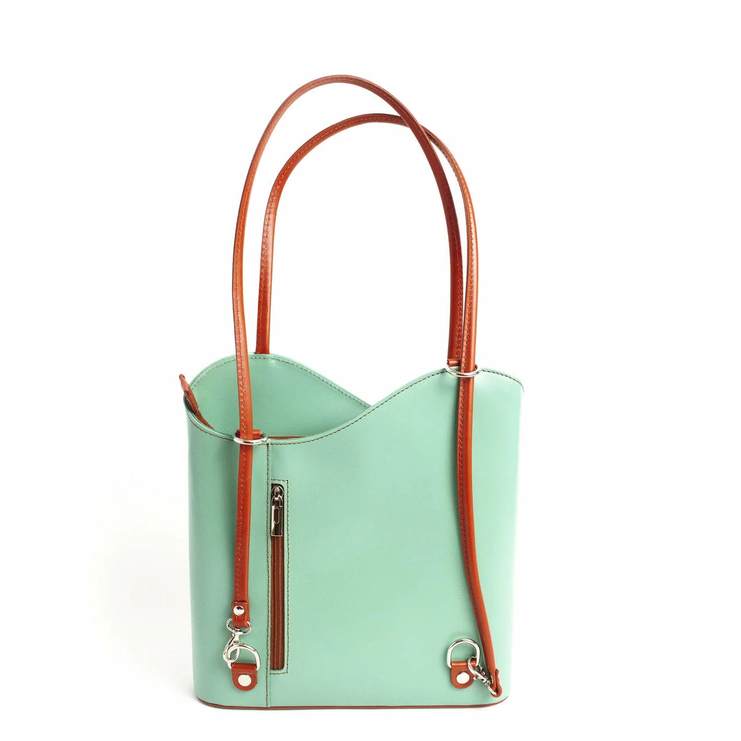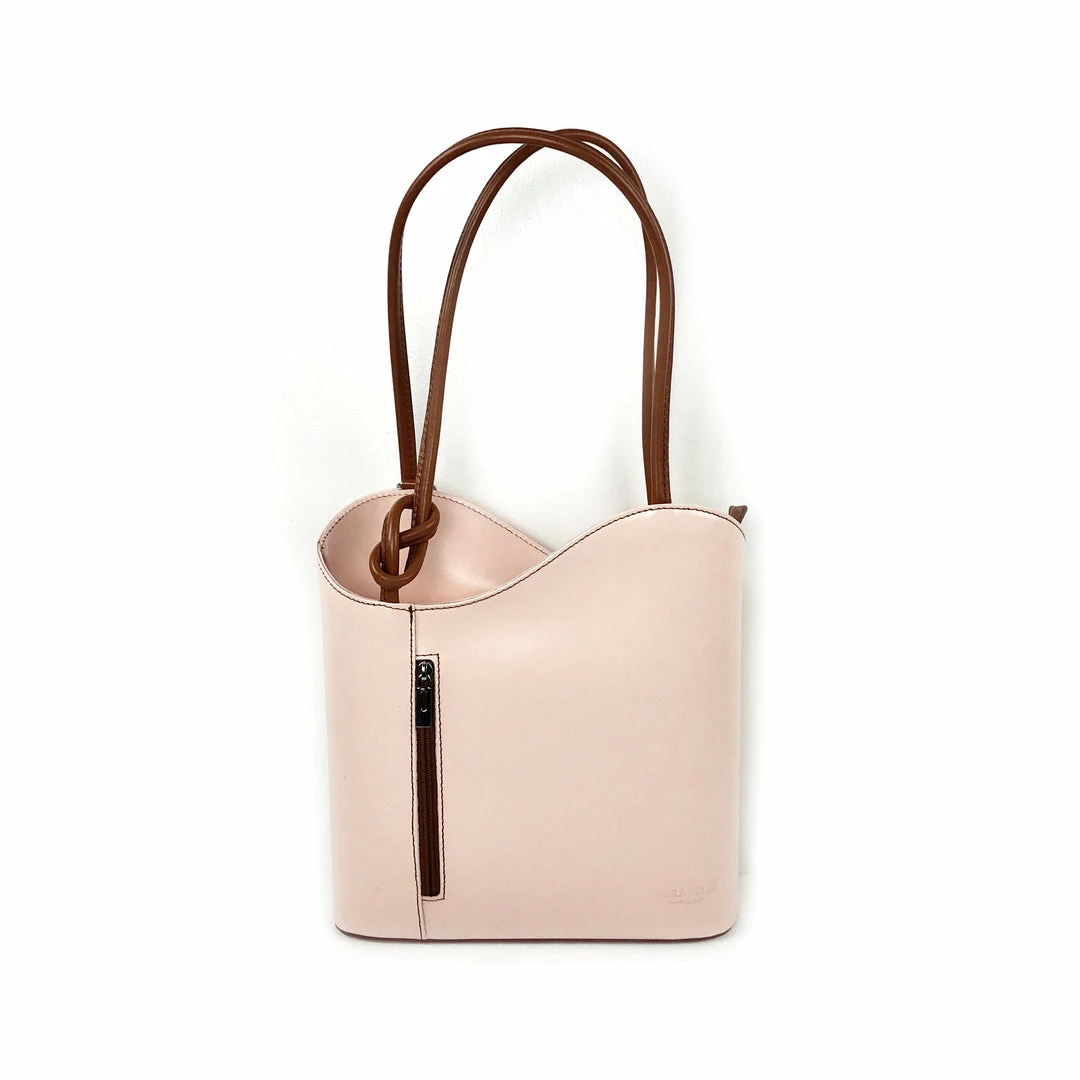 A backpack or a shoulder bag? How about BOTH! The Varese from Solo Perche is the convertible luxury bag you’ve been waiting for! Handcrafted from sleek, soft Italian leather, this unique bag converts from a shoulder bag to a lightweight backpack simply by pulling down the straps. No fussing with attaching and detaching numerous straps! The exterior features two zippered pockets on the front and back for slipping your phone, keys or wallet in for easy access. Unzip the main compartment for enough room to carry a small laptop or tablet with a zippered pocket for additional storage. For the woman who loves options, luxury and craftsmanship, the Varese is for you!