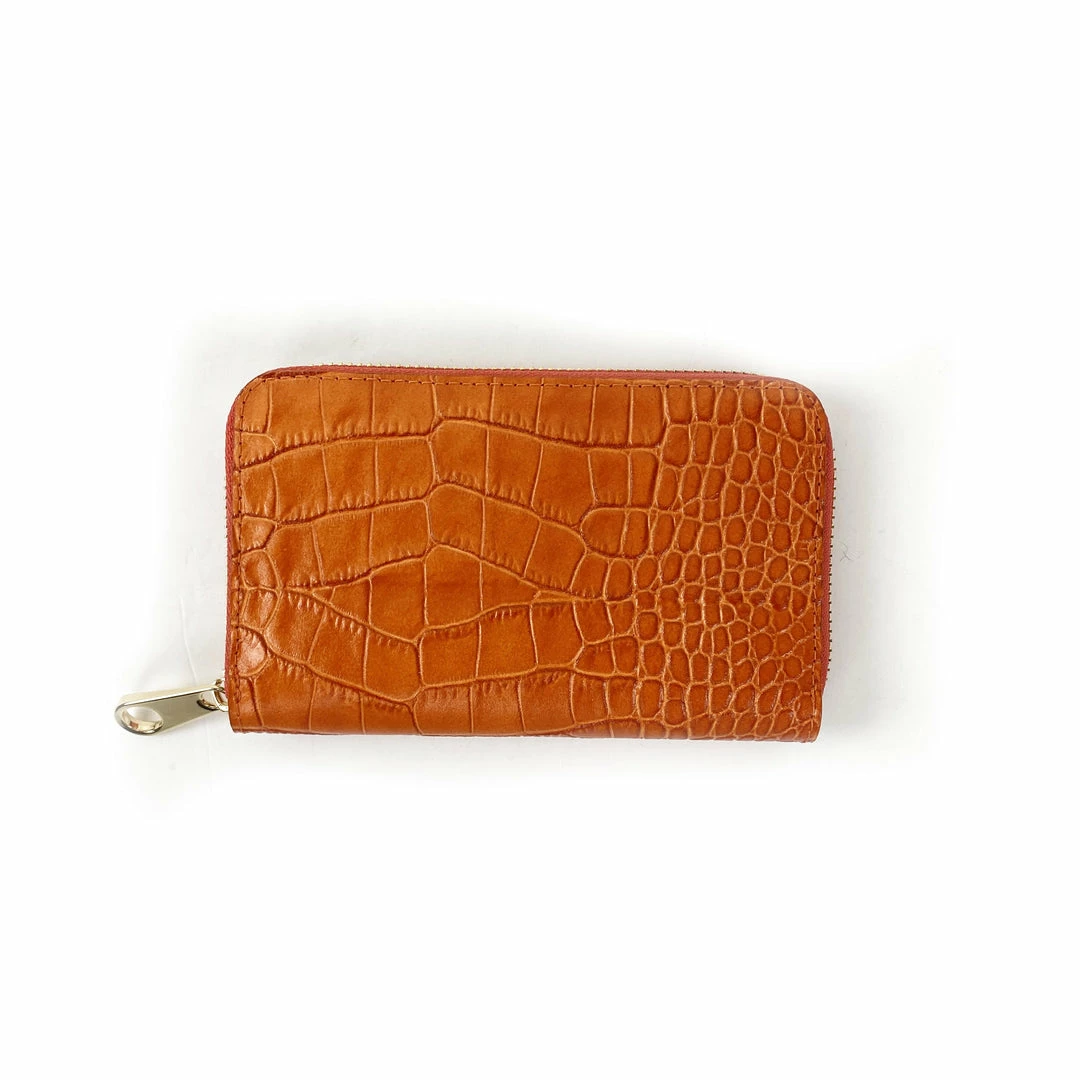 The Italian leather Ancona is a small wallet with BIG storage! Six slip pockets provide space for your cards while a middle zippered pocket keeps change and small items safe. Space for cash or receipts can be stored on either side of the zippered middle compartment too! An exterior zipper keeps your wallet secure yet easy to access.