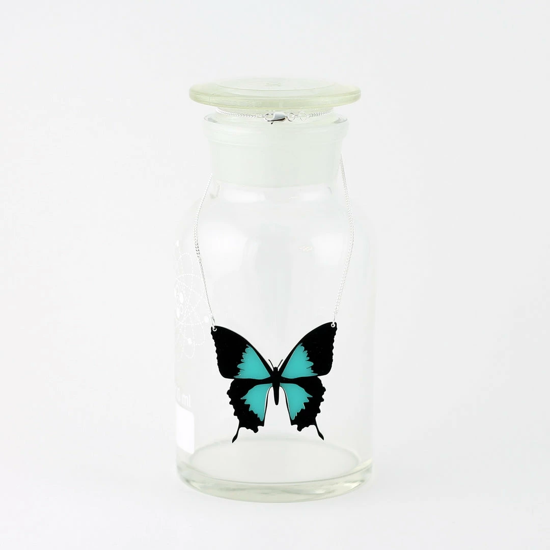 No butterflies were harmed in the making of this beautiful acrylic necklace featuring the Ulysses Butterfly. Pair this lightweight necklace with your favorite jeans for a casual look or add a pop of color and whimsy to your favorite LBD.