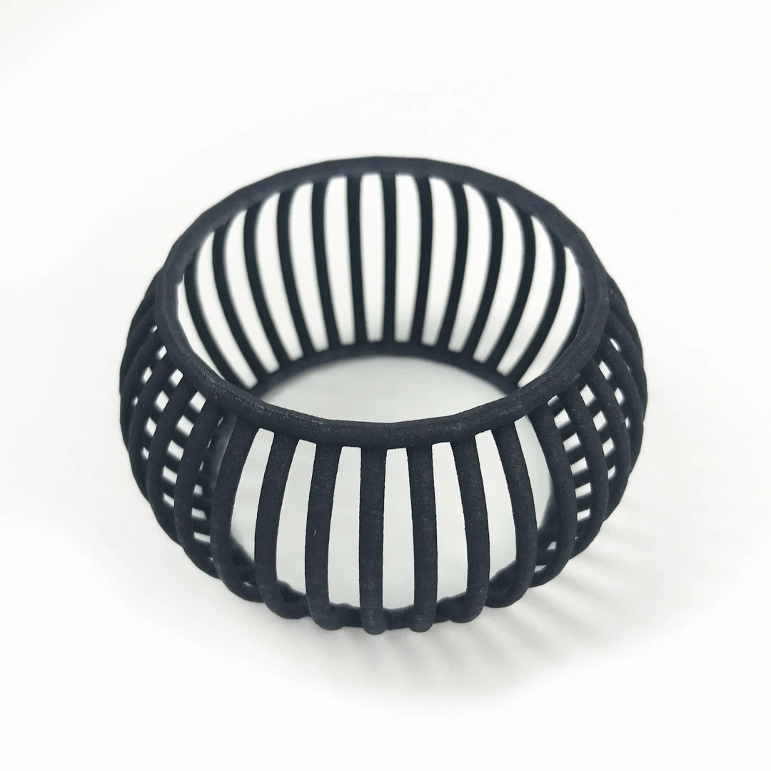 3D printed bracelets by Susan Sanders. Beautiful matte black lite weight statement jewelry. Measurement taken from inside diameter.